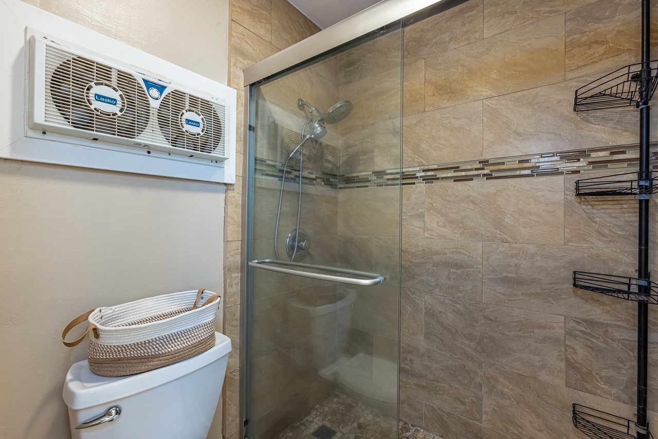 Comfortable bedroom with a split AC system to keep you cool all night.