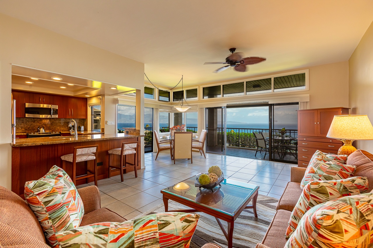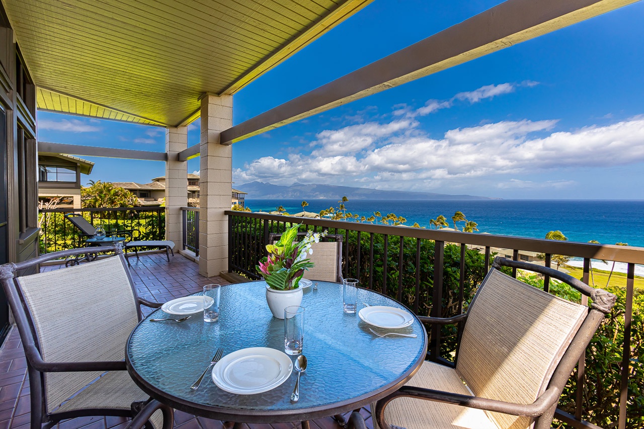 Welcome to Kapalua Ridge Villa 2212, with stunning ocean views! This villa is located in highly sought after Kapalua Ridge! As you enter this spacious villa you will be drawn to the expansive private lanai overlooking unobstructed views of the magical Maui waters. The large private lanai allows for relaxing or dine alfresco to a gorgeous Maui sunset. With views from the kitchen no one will mind cooking in this villa! Fully equipped with plate ware and utensils as well as all of the cooking items any chef would need. Complete with eat up breakfast bar. The living space is open and inviting. Offering plenty of seating, TV and sofa sleeper for additional guests. There is a window AC unit to keep cool. Just off the main living area is an additional bath for guests use. Washer/dryer allow for lighter packing. The guest bedroom offers the perfect set up with two twin beds that can convert to a king upon request. There is also window AC, TV, ceiling fan, and small lanai. Complete with ensuite bathroom featuring dual vanities, large tub/shower combo and large walk-in closet. Wake up to the marvelous views from your primary suite! Complete with king bed, TV, window AC unit and second lanai. Relax while sipping your morning coffee watching whales breach during season. The primary bath features a large walk in shower and lovely dual vanities. Enjoy the pool area with BBQ's and covered outdoor kitchen area including oven, stove, refrigerator, microwave, tables and chairs. Located next to three world class golf courses, The Kapalua, The Bay Course and the world-famous Plantation. Minutes away by car are Kapalua Beach, DT Fleming Beach, Napili Bay and Honolua Bay. Also close by is the Ritz Carlton hotel, the new Kapalua Center featuring Sansei and The Pour House for dining, and the renovated Honolua Store.