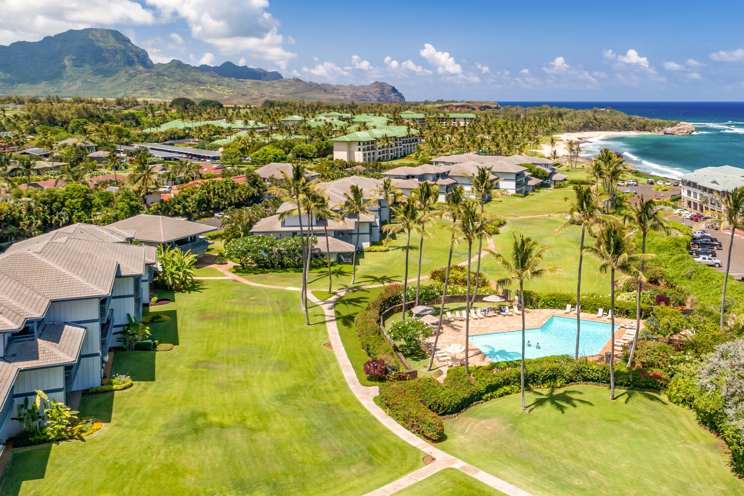 Luxury Nearby: Adjacent Grand Hyatt Kauai offers fine dining, retail shopping, and championship golf at Poipu Bay Course.