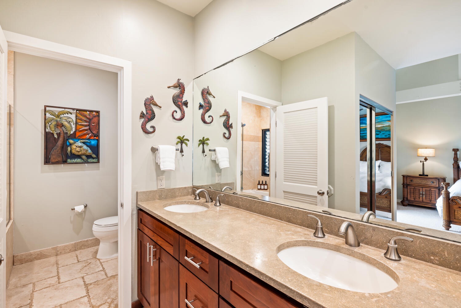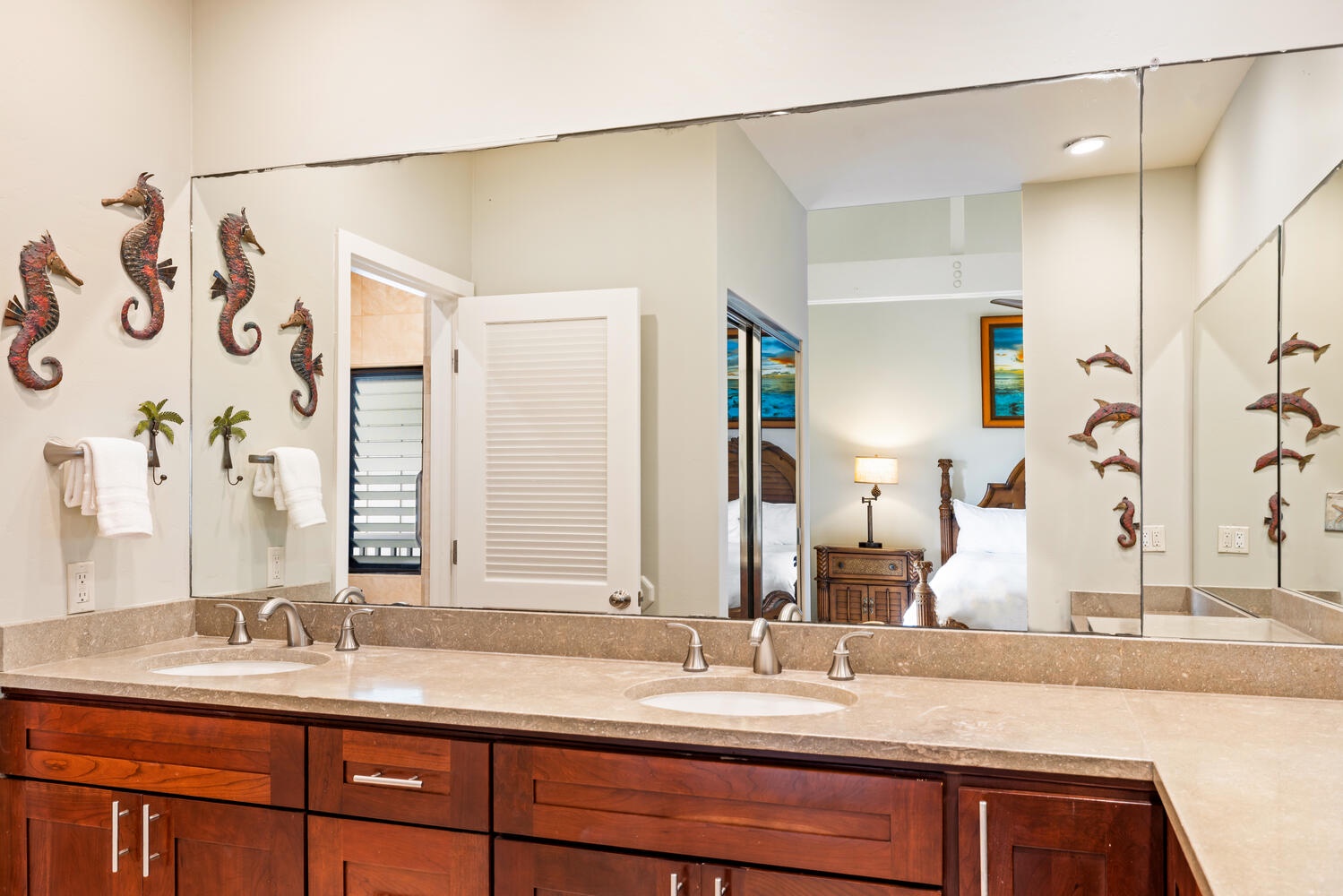 Primary Suite: Spacious king bedroom with private patio, spa-like bathroom featuring soaking tub, and panoramic ocean vistas.
