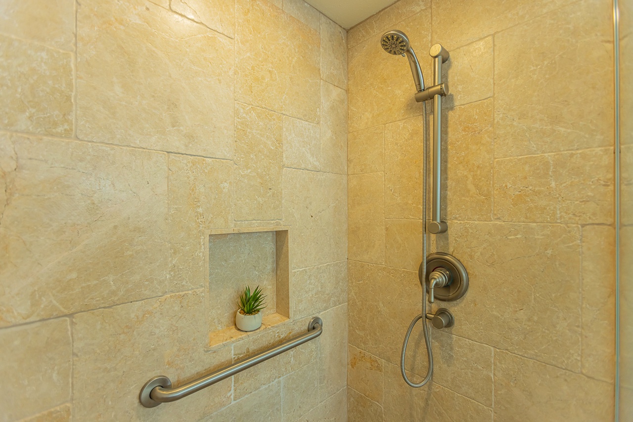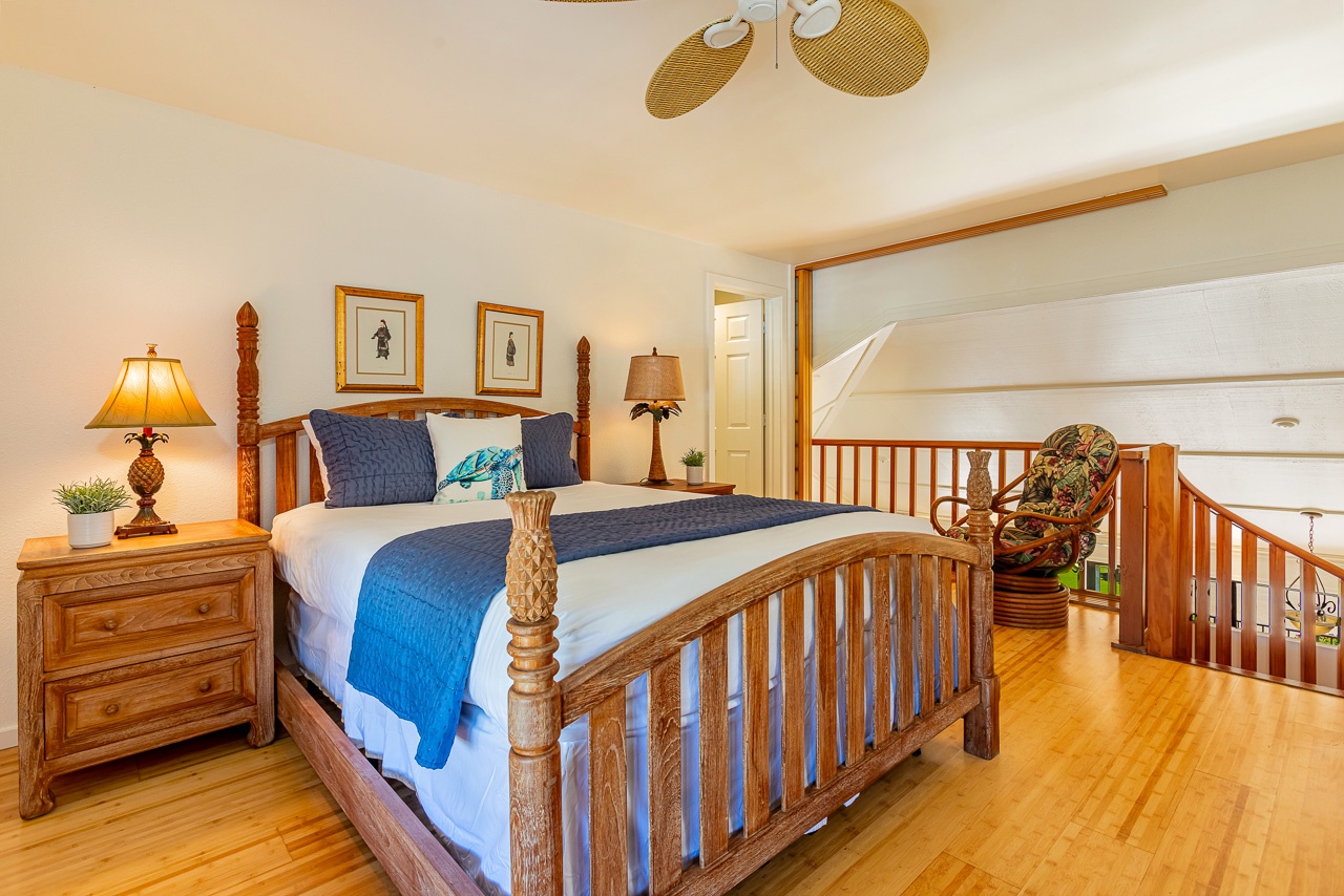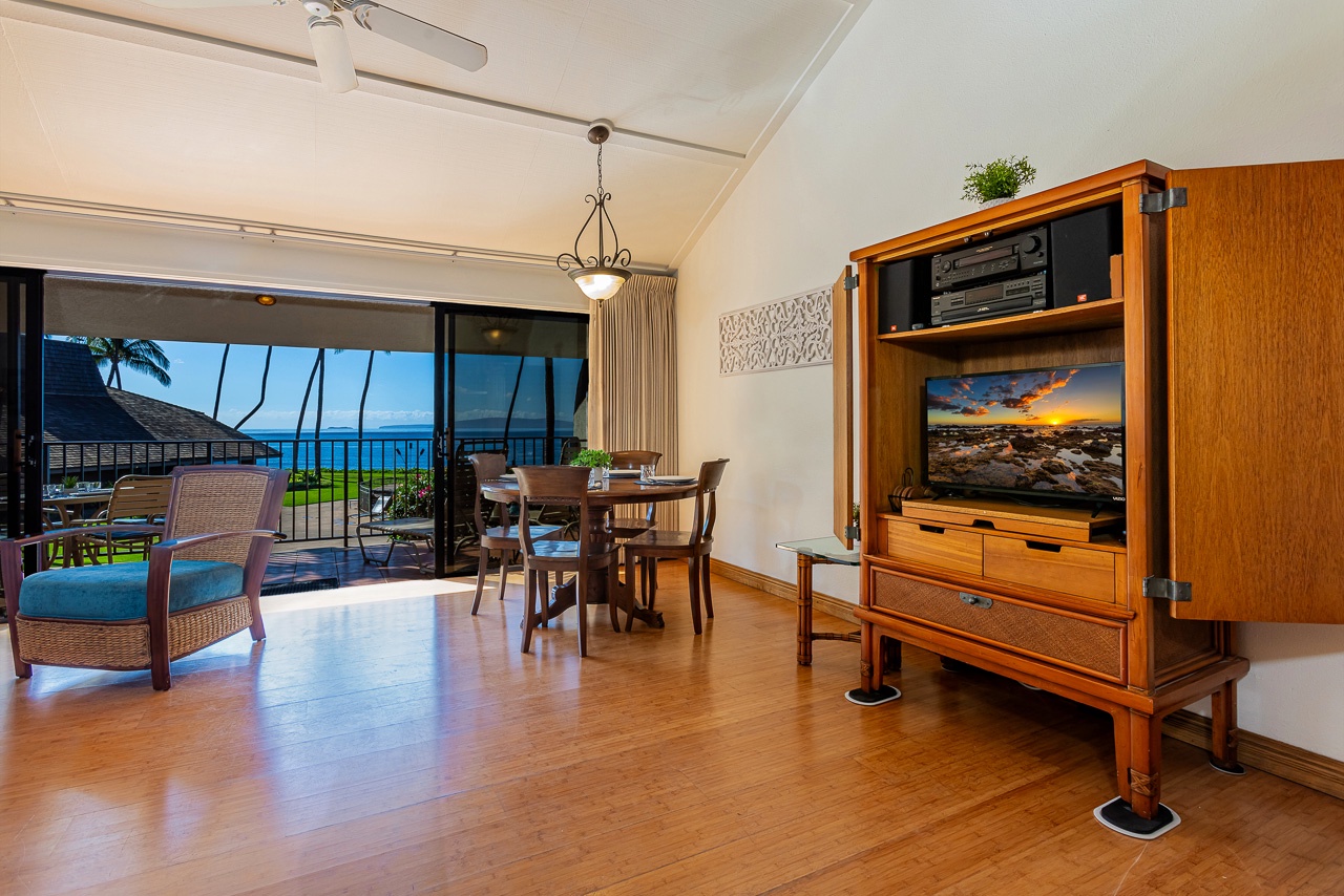 Experience tropical paradise at Ma'alaea Surf C10, a luxurious 2-bedroom, 2-bathroom oceanfront condo offering breathtaking sunset views and prime whale watching during winter months. This thoughtfully designed vacation home features a spacious open-concept living area, a private loft bedroom with queen bed and en suite bathroom featuring a custom tiled shower, plus a main floor bedroom with king bed. Stay cool and comfortable with central AC for those hot months and ceiling fans throughout with the screened lanai doors for the breezy cooler days. Enjoy the stunning ocean vistas from your private lanai furnished with lounge chairs and an outdoor dining table for four. Meals just taste better al fresco!