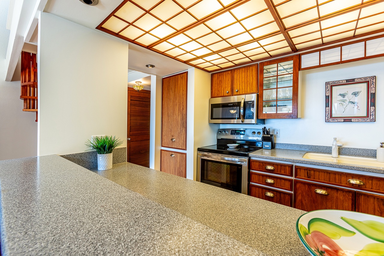 This perfectly positioned Kihei gem combines serenity with convenience, offering a peaceful, secluded atmosphere while being just minutes from Maui's best attractions. The fully equipped kitchen and tasteful Aloha décor with crisp white linens create the perfect home base for your Hawaiian getaway. Steps from both the pool and beach, you'll enjoy the cooling trade winds and spectacular ocean views from this ideally situated unit. Whether dining on your private lanai or simply soaking in the panoramic ocean views, Ma'alaea Surf C10 provides the ultimate Maui escape.