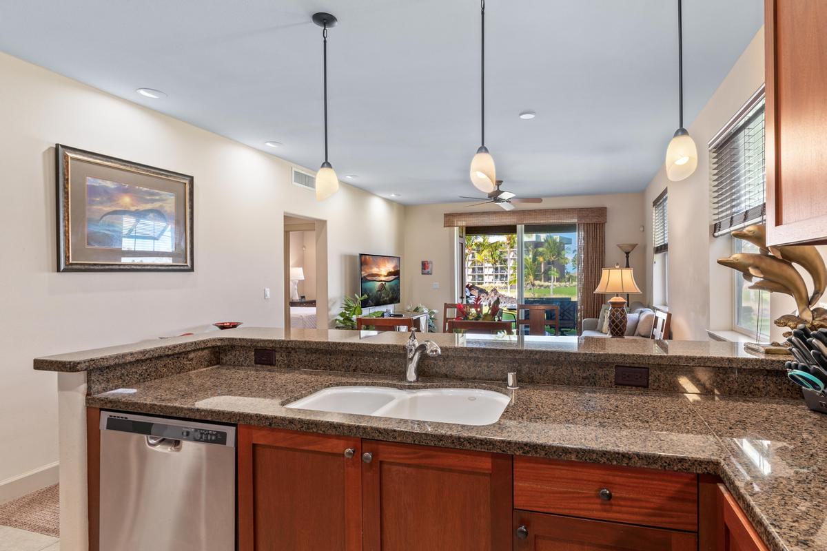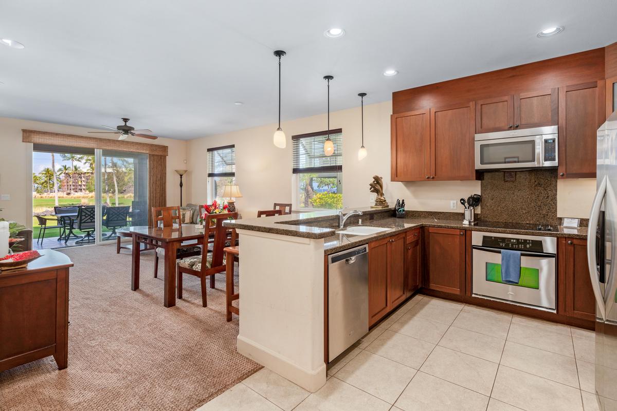 We loved our stay!! We went with my parents and our 2 kids (3 and 6). The complex was a great location in Waikaloa and we walked to the Hilton lagoon to swim several times. We loved the Hali’i Kai pool, it has a beautiful view and we loved being right on the water. The restaurant was great for lunch and was a great location for a nice dinner though we didn’t try that menu. We loved the condo- it was spacious with 3 rooms and we appreciated having two king beds. The kitchen had all the essentials and then some and we did a lot of cooking. The garage was full of everything we needed for the beach- chairs, snorkel gear, umbrella, cooler, beach toys, and even bikes. We loved our little water view from the lanai and it was a great spot to watch the sunset. We had a great stay, I’d recommend this place to anyone looking for a nice place in Waikaloa.