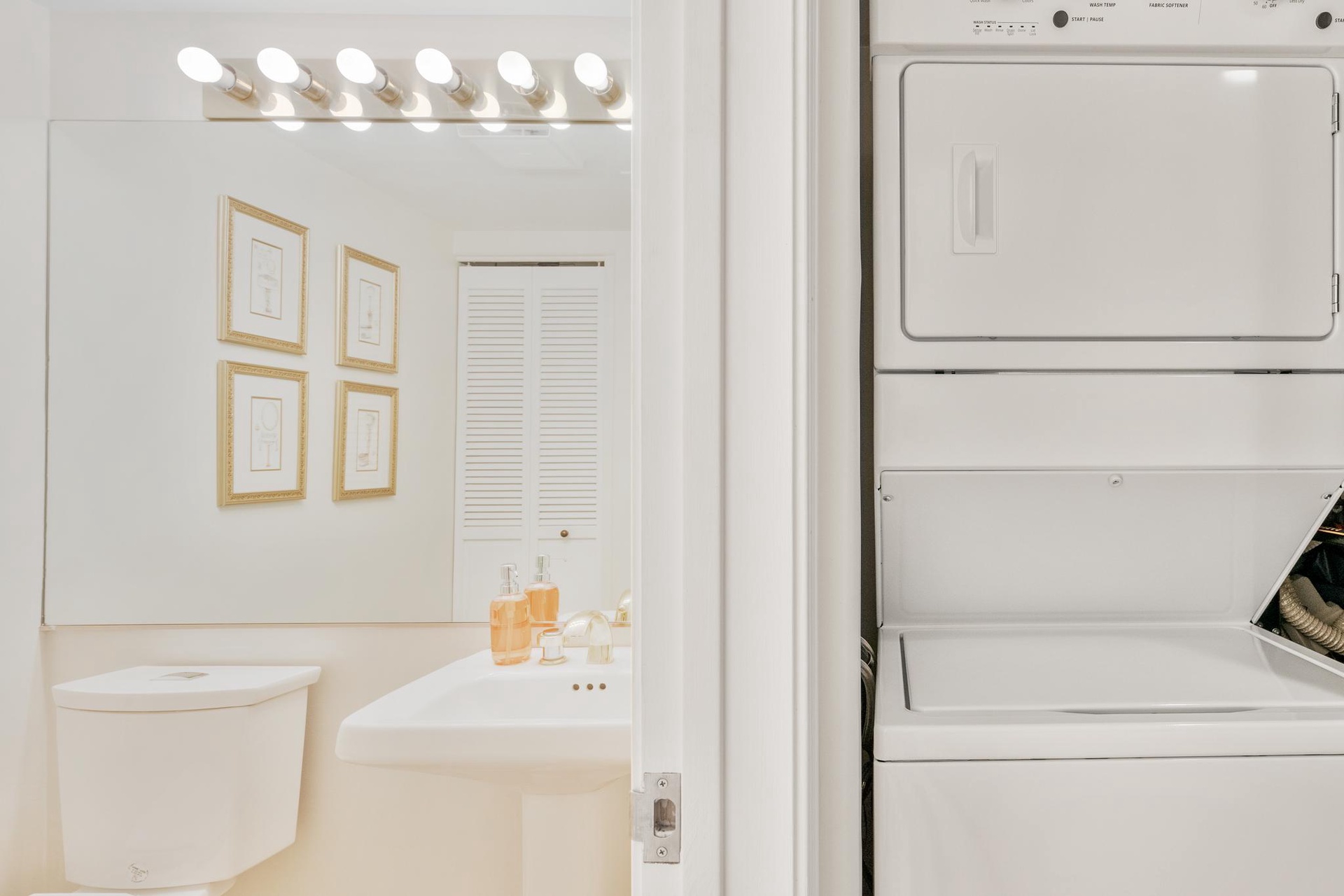 Upon entry, you are welcomed by a large open layout of the living area, dining room, and kitchen. There is a half bath towards the entrance next to the washer and dryer, so very convenient. Enjoy the openness of the living area that has a sleeper sofa and plenty of seating. Watch your favorite show and enjoy the central AC.