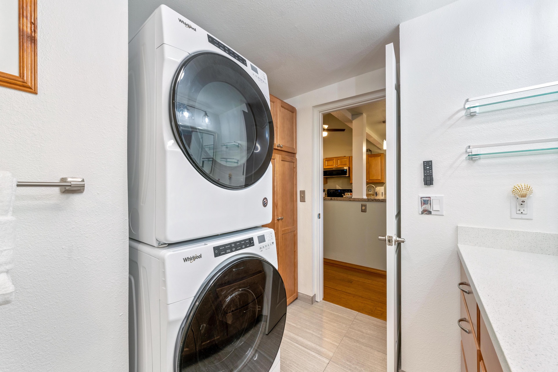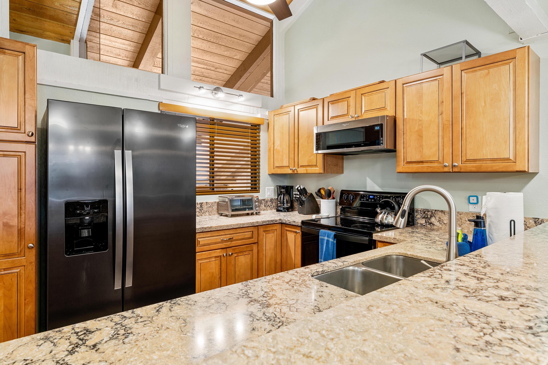 Enjoy the open layout of the living room, dining area, and kitchen. The kitchen has granite countertops and stainless steel appliances and is fully equipped for all your cooking needs. Enjoy a sit-down dinner at the dining room table. The living area has a flat-screen television to watch your favorite shows and ample comfortable seating for you and your guests.