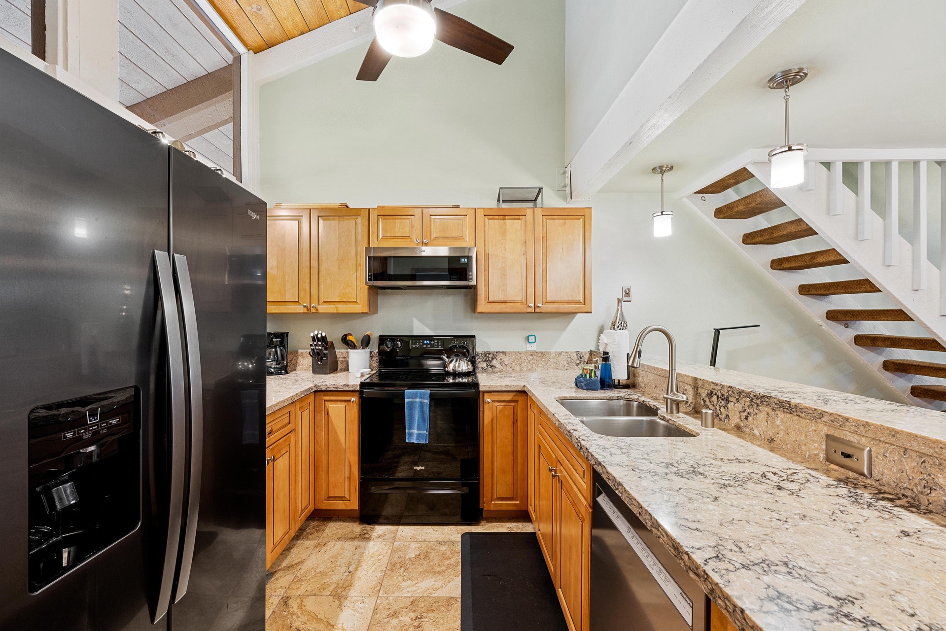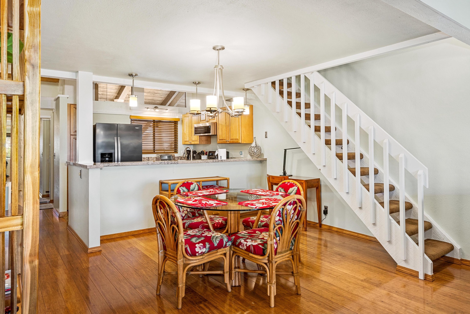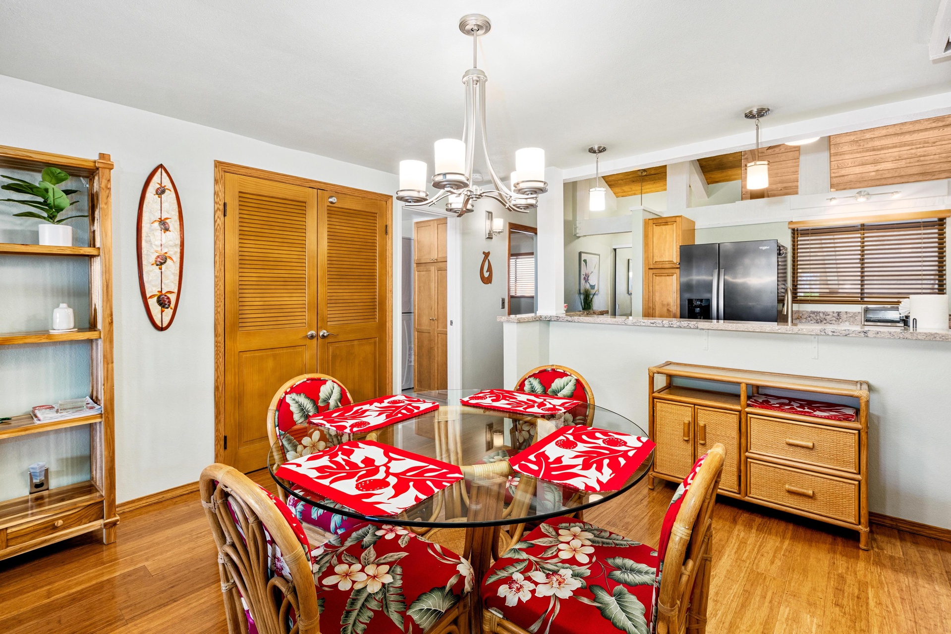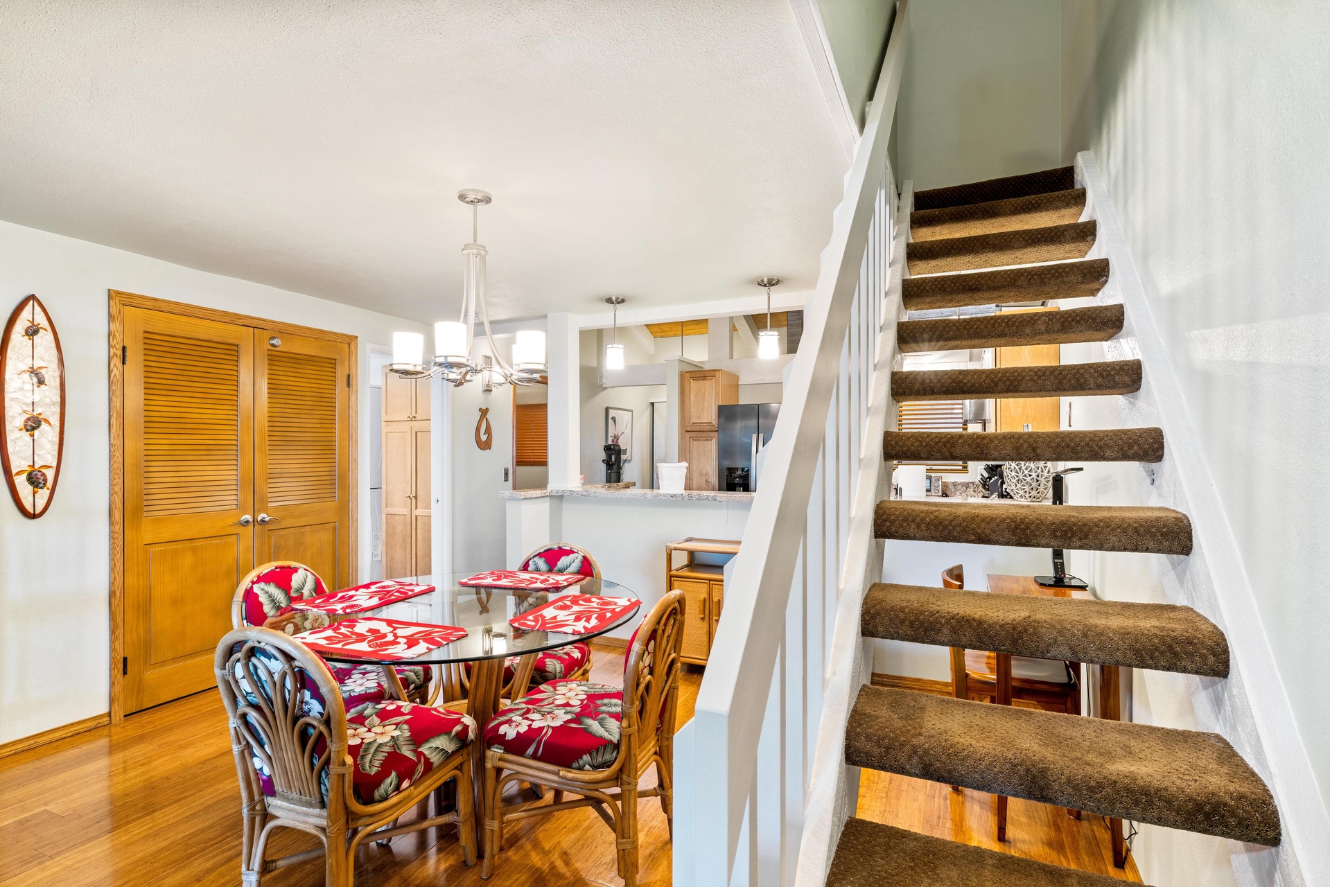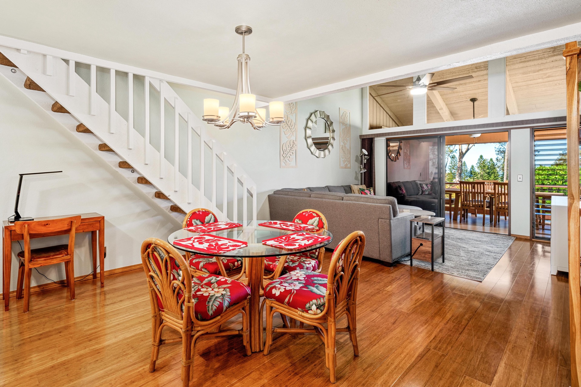 This home is decorated in island style and has an open-plan living area that leads to a lanai with a large dining table. Take in the views of the golf course and the lushly landscaped surroundings over your morning cup of Kona coffee. You can even see the blue Pacific ocean over the trees for peek-a-boo ocean views.