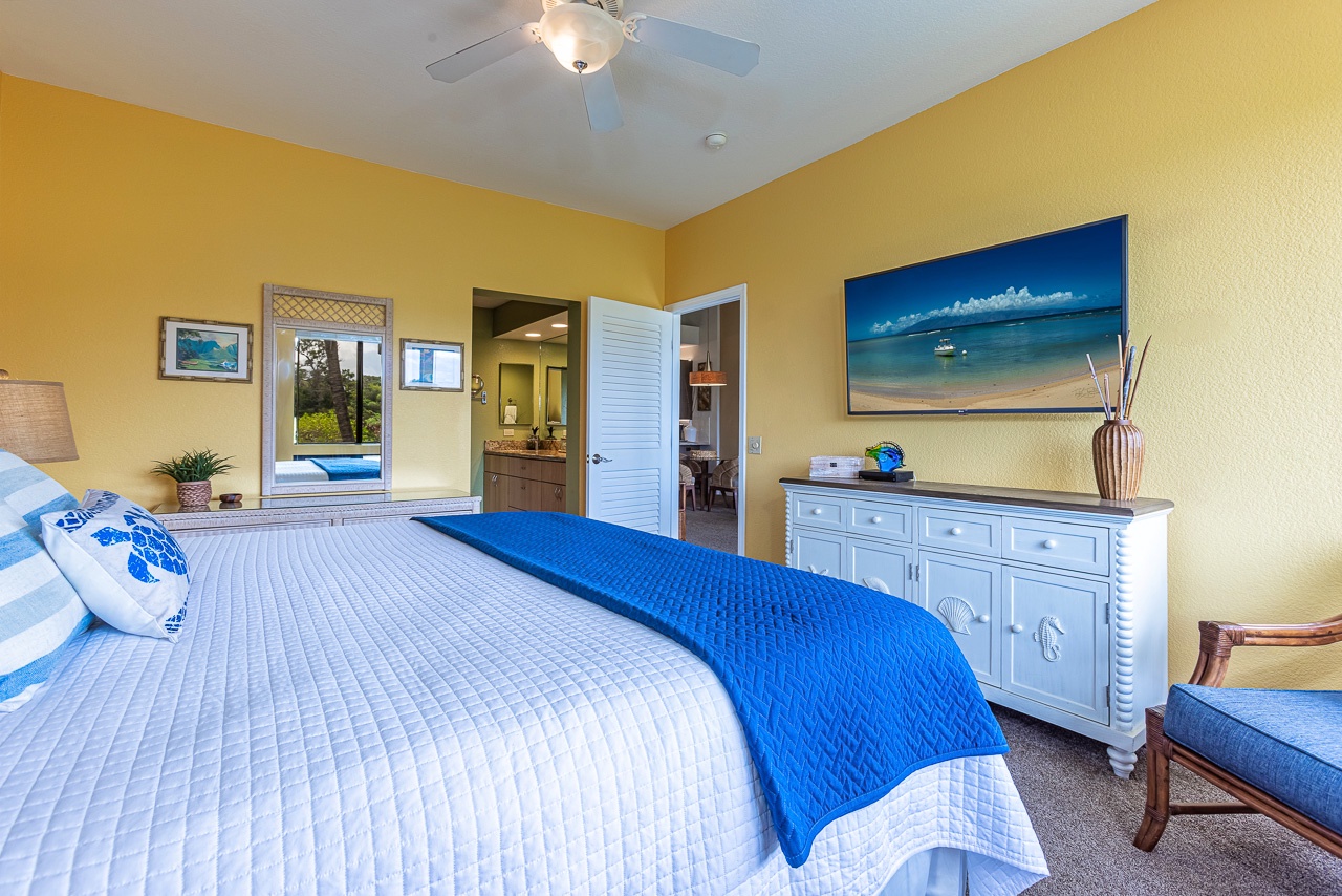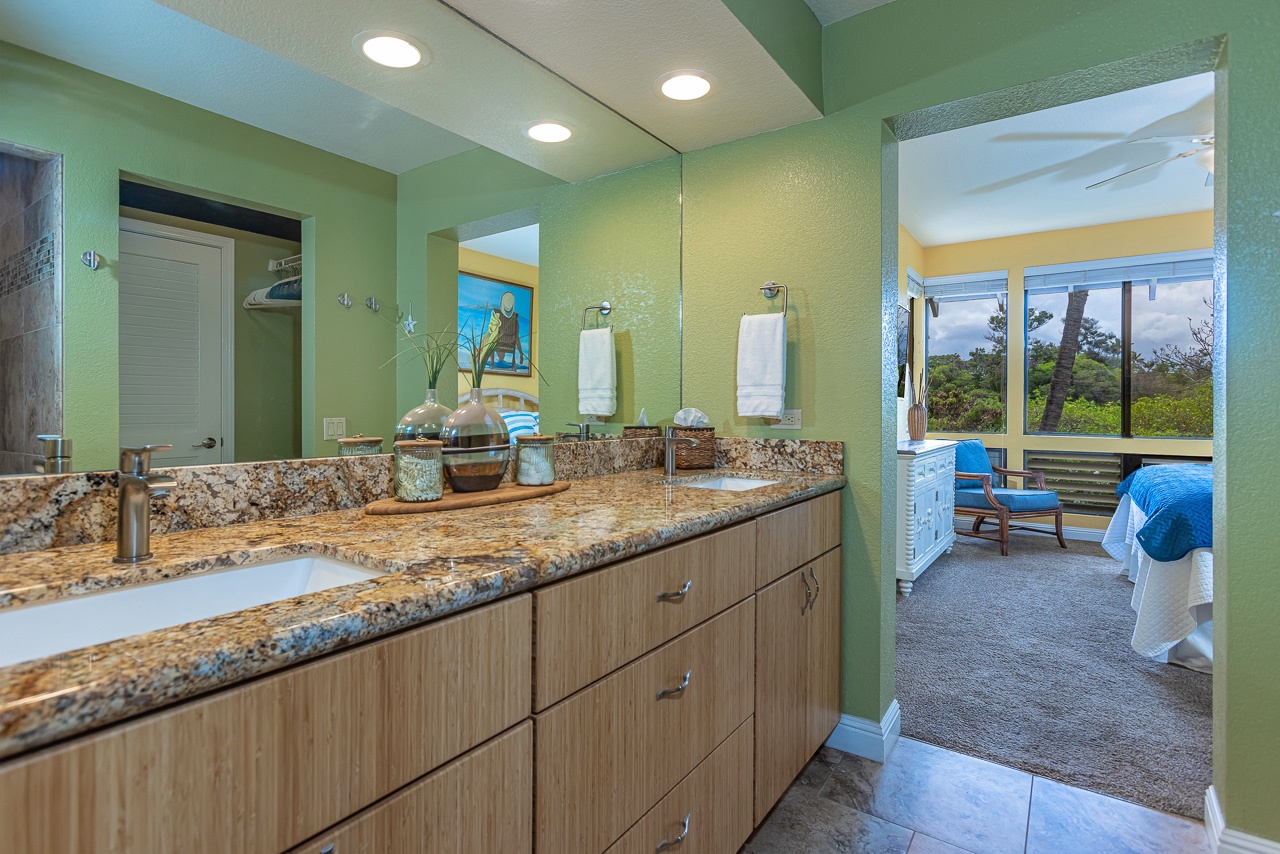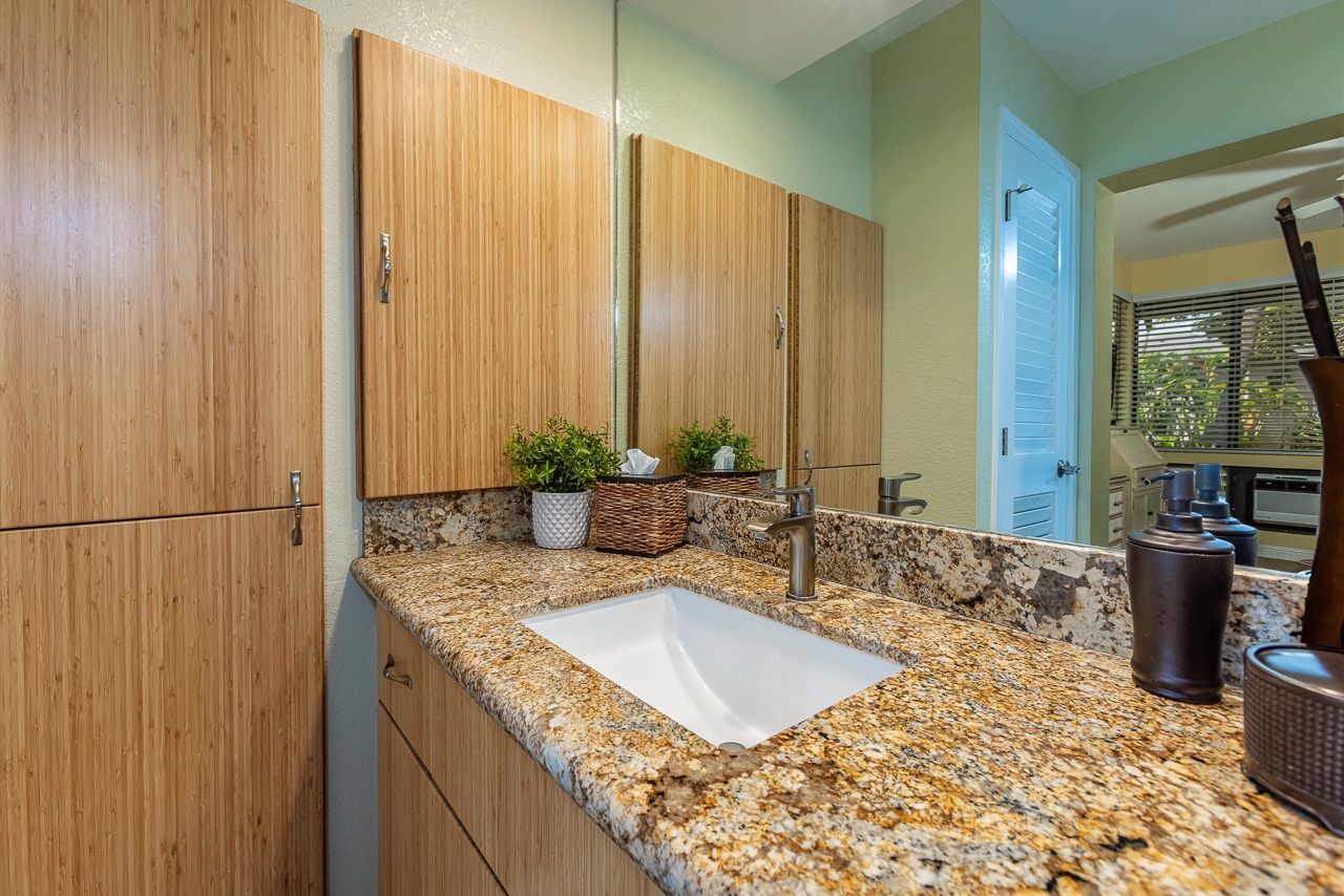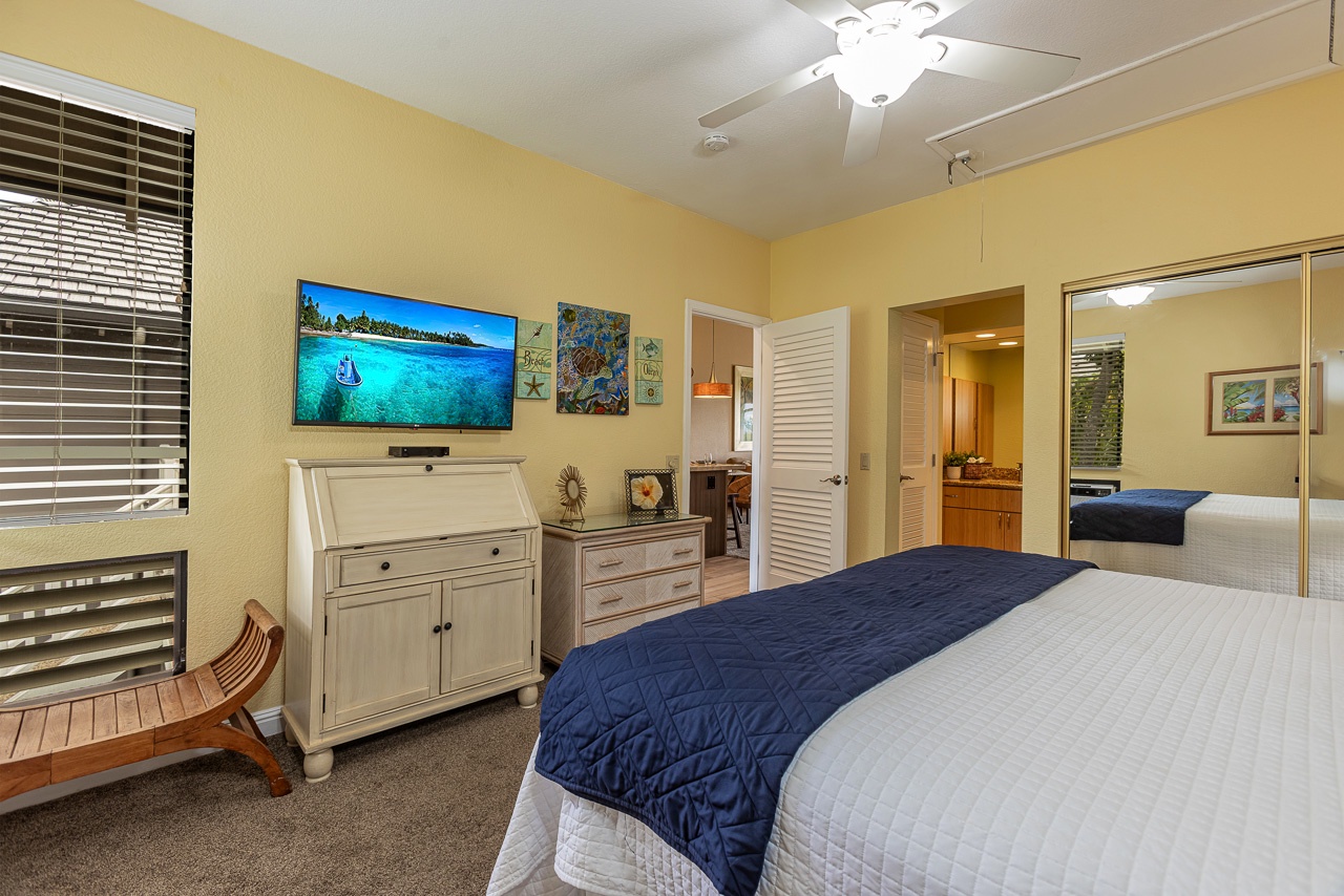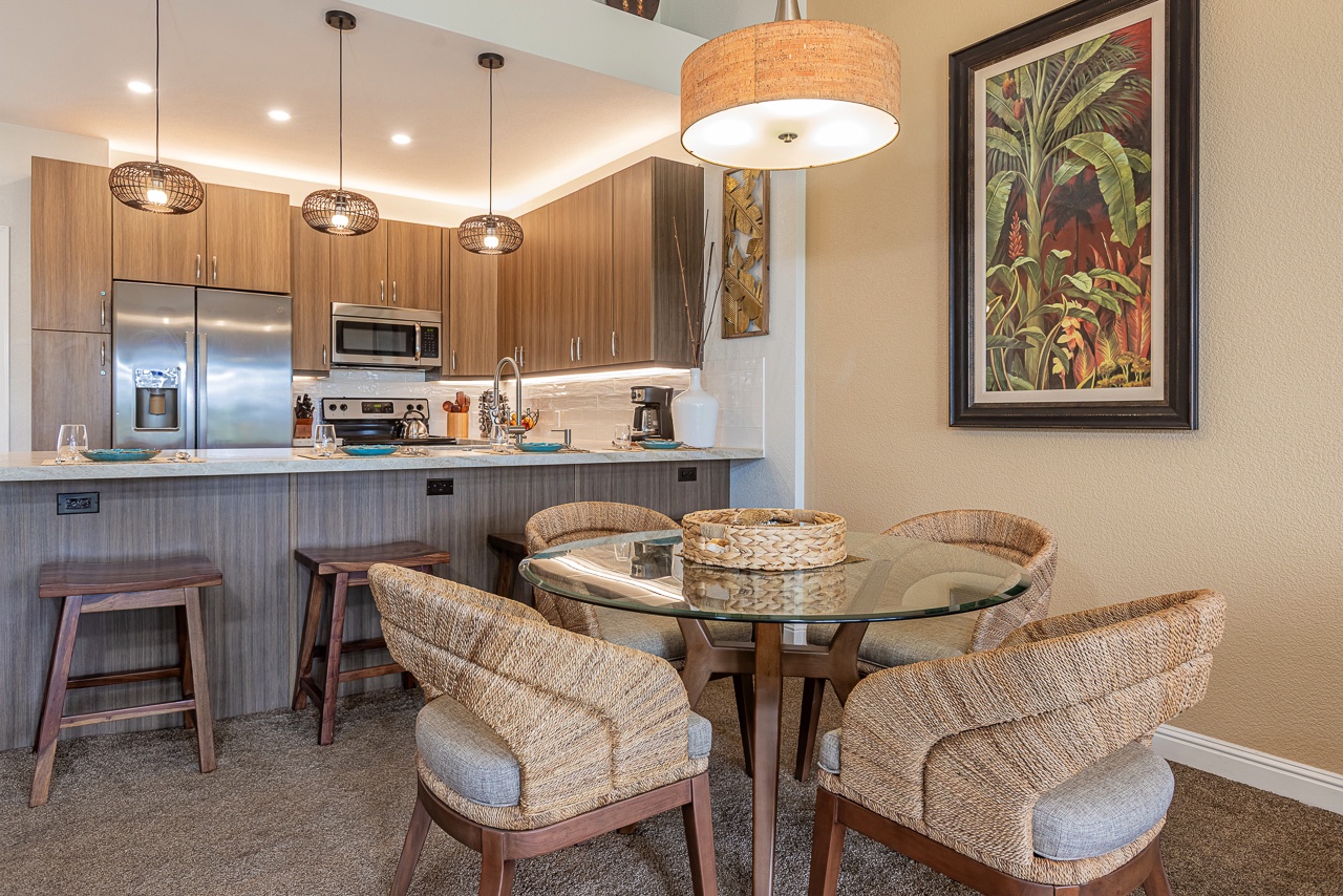 The tasteful and well-thought-out furnishings truly embrace the Hawaiian spirit. Catch up on your favorite shows via upgraded high-speed internet and three Smart TVs, including the large wall-mounted flat-screen in the living room. Blackout curtains in the living area make use of the upgraded sleeper sofa even more comfortable for sleeping up to six guests. The kitchen is updated with stainless appliances, slab granite countertops, and everything you need to enjoy home-cooked meals al fresco on the lanai.