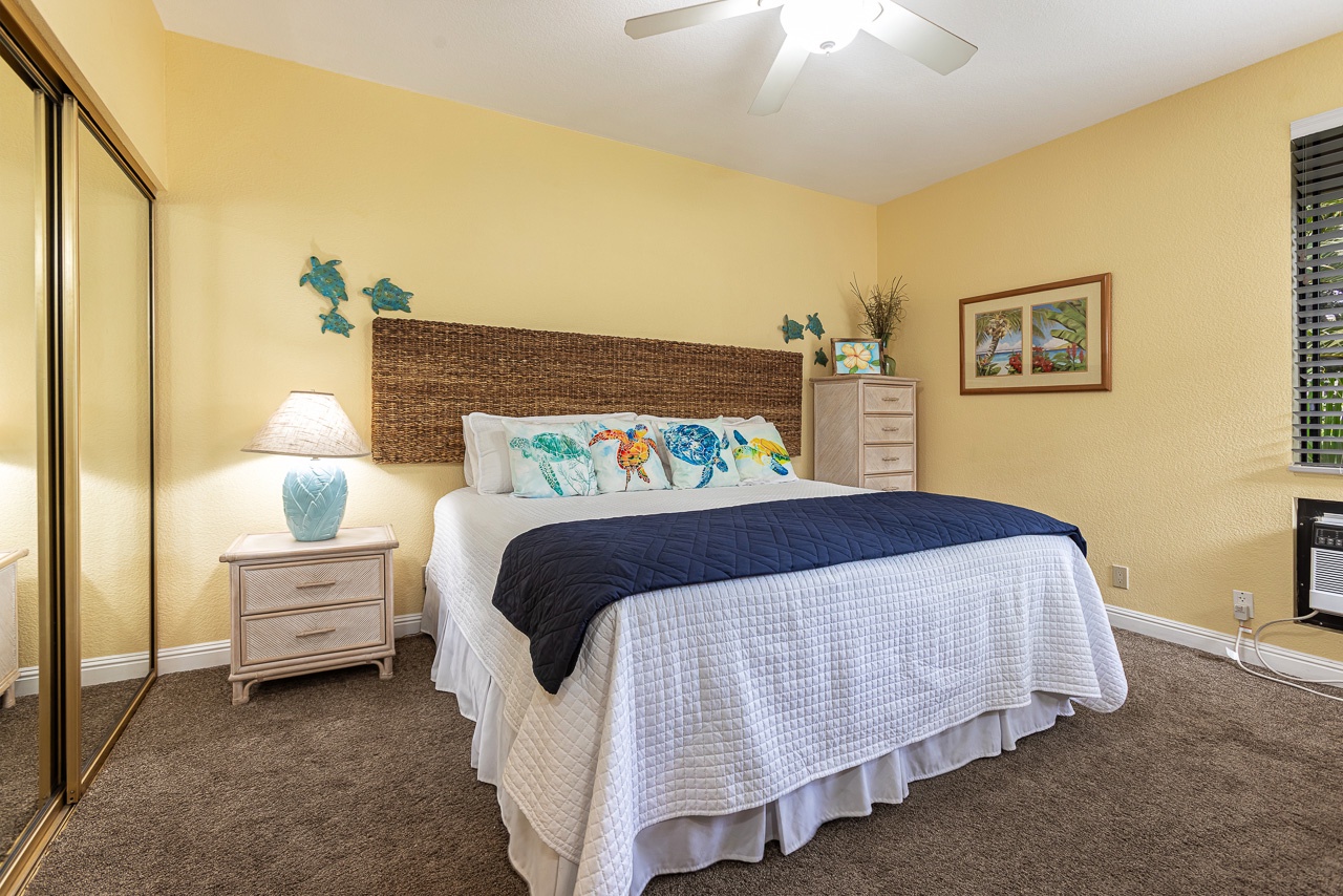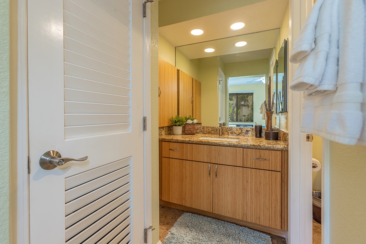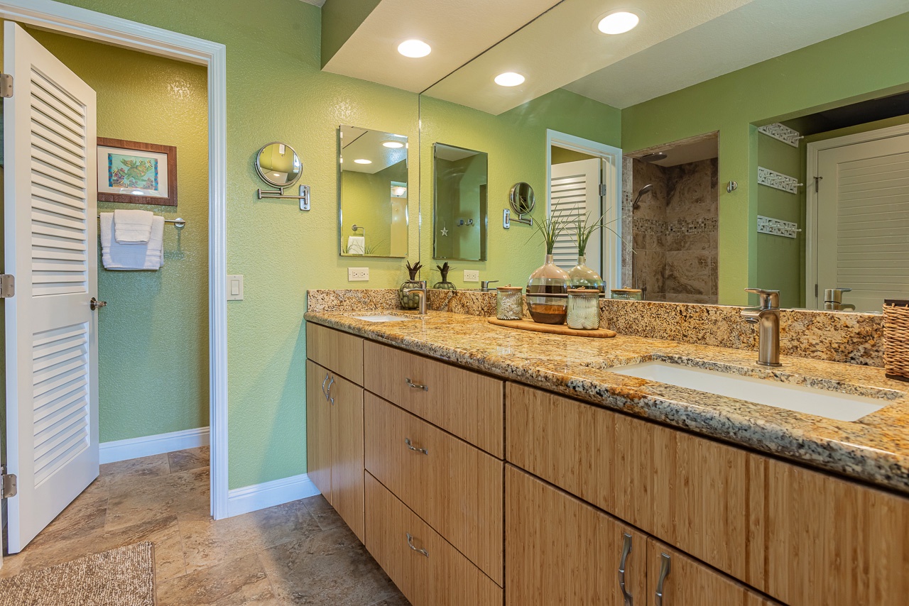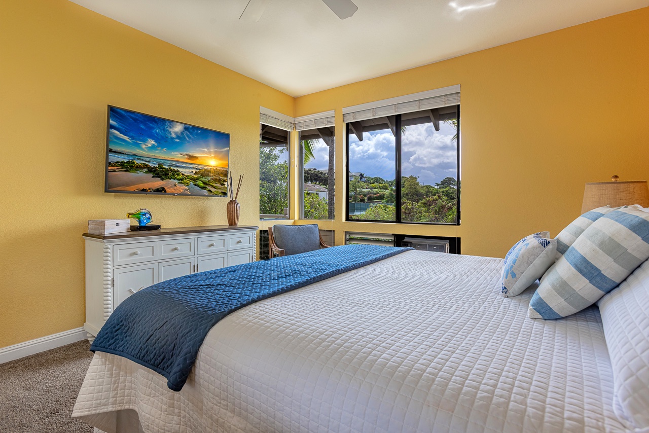 The tasteful and well-thought-out furnishings truly embrace the Hawaiian spirit. Catch up on your favorite shows via upgraded high-speed internet and three Smart TVs, including the large wall-mounted flat-screen in the living room. Blackout curtains in the living area make use of the upgraded sleeper sofa even more comfortable for sleeping up to six guests. The kitchen is updated with stainless appliances, slab granite countertops, and everything you need to enjoy home-cooked meals al fresco on the lanai.