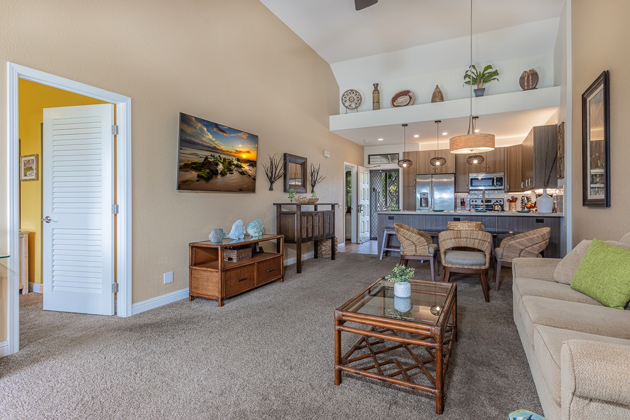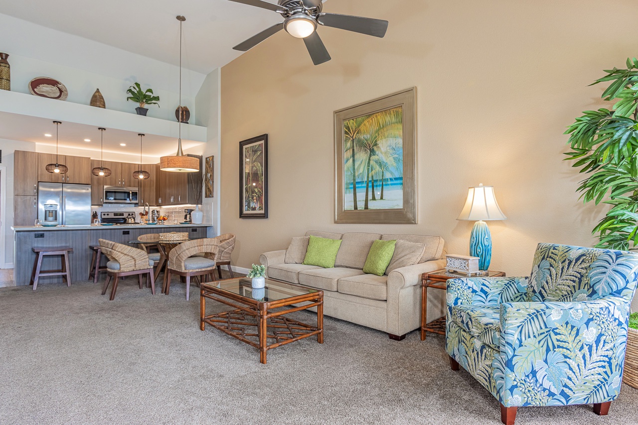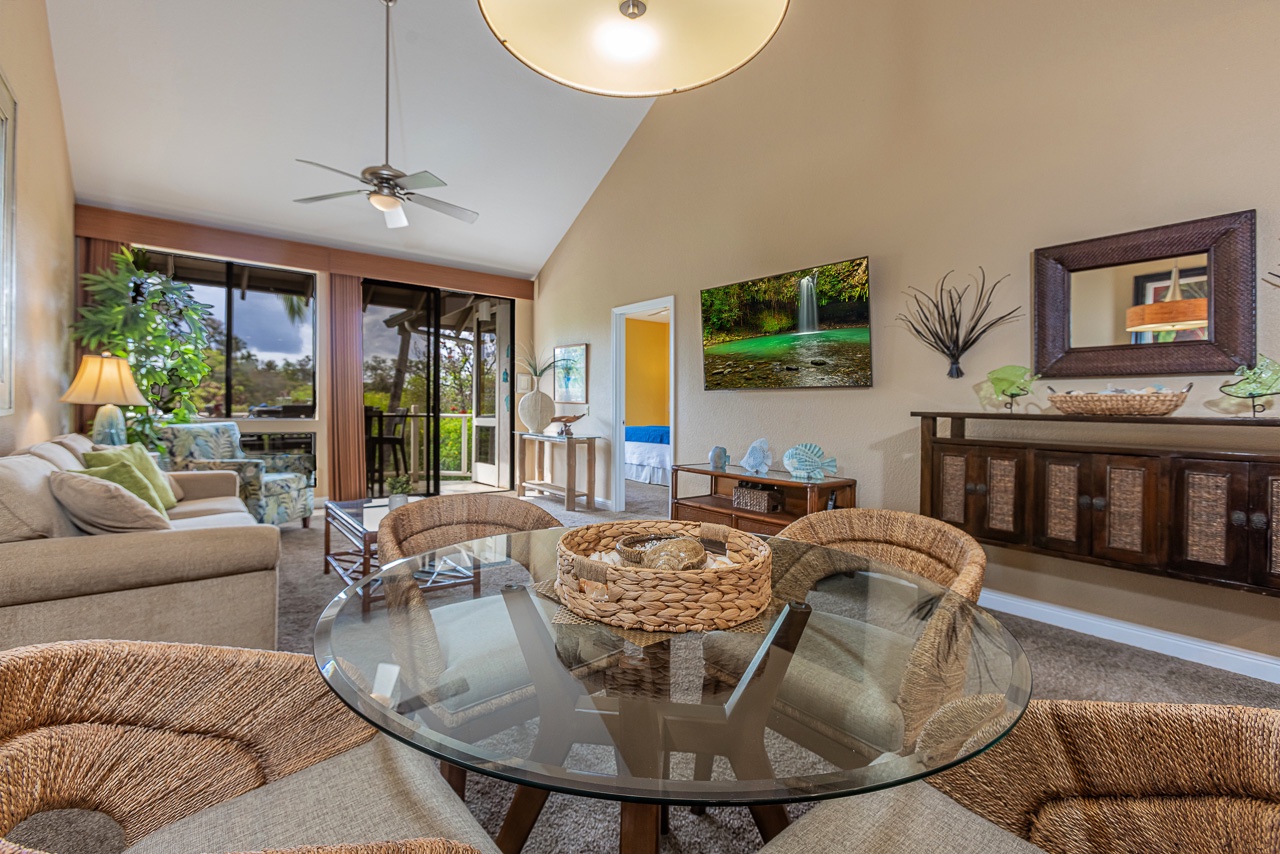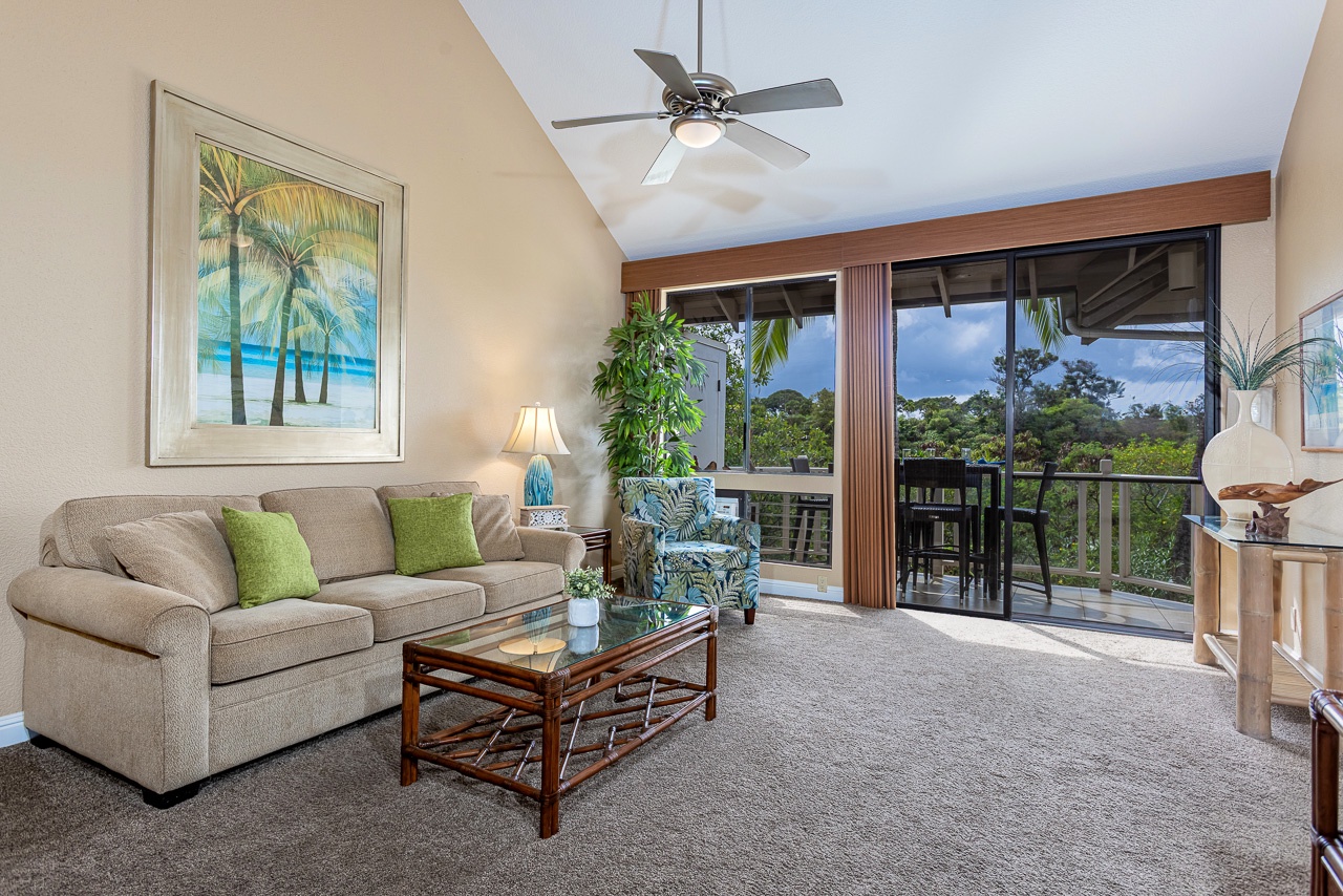 Kick back and relax on your own private lanai and take in wonderful garden views and peek-a-boo views of the ocean. Feel the refreshing trade winds and take in the aroma of the beautiful Plumeria trees and Hawaiian foliage. #138 is a clean and comfortable upstairs unit with vaulted ceilings in the Grand Champions Villas. This condo comes fully stocked with all the amenities needed to make you feel as if you are in your own home.