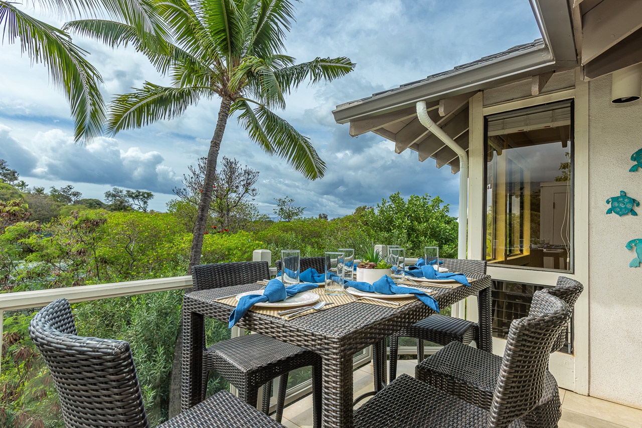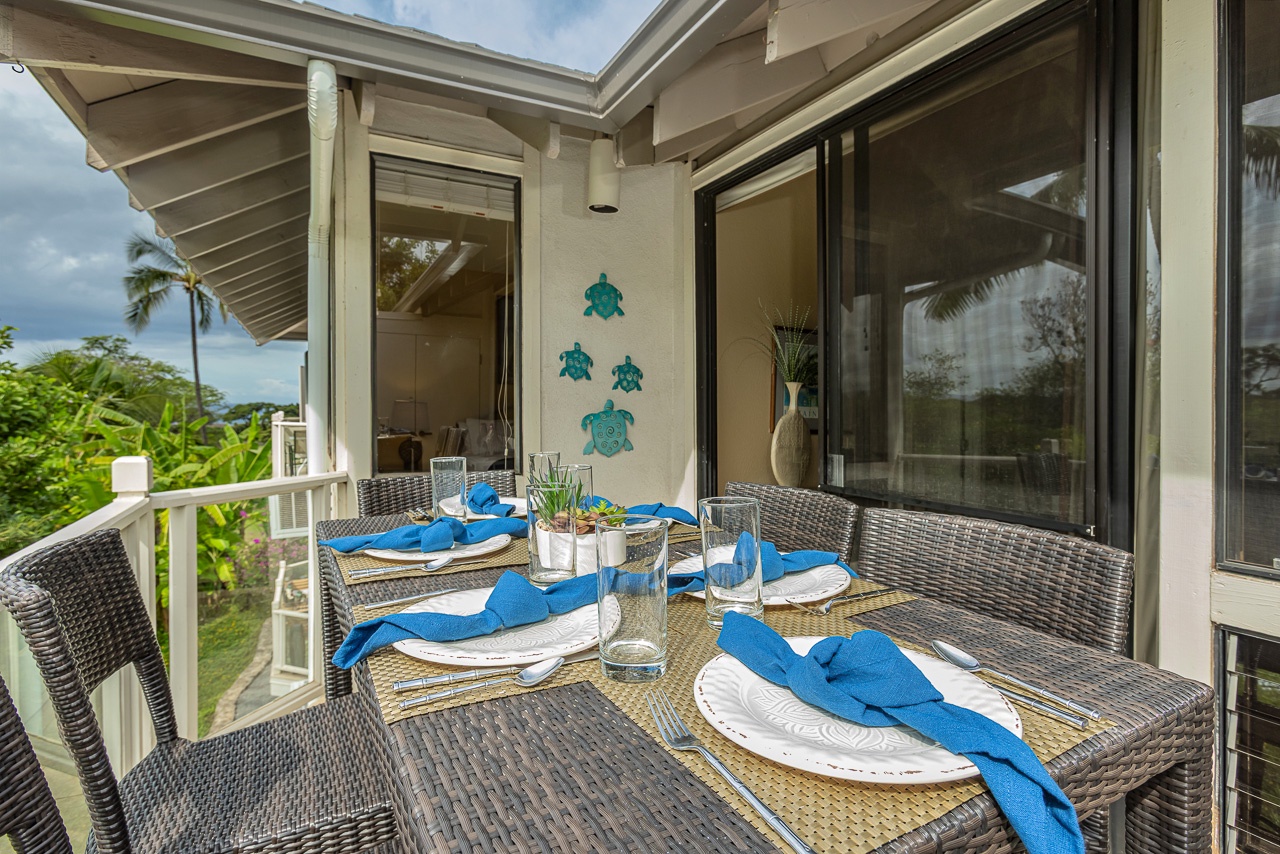 Enjoy morning coffee or evening meals on your peaceful private lanai
