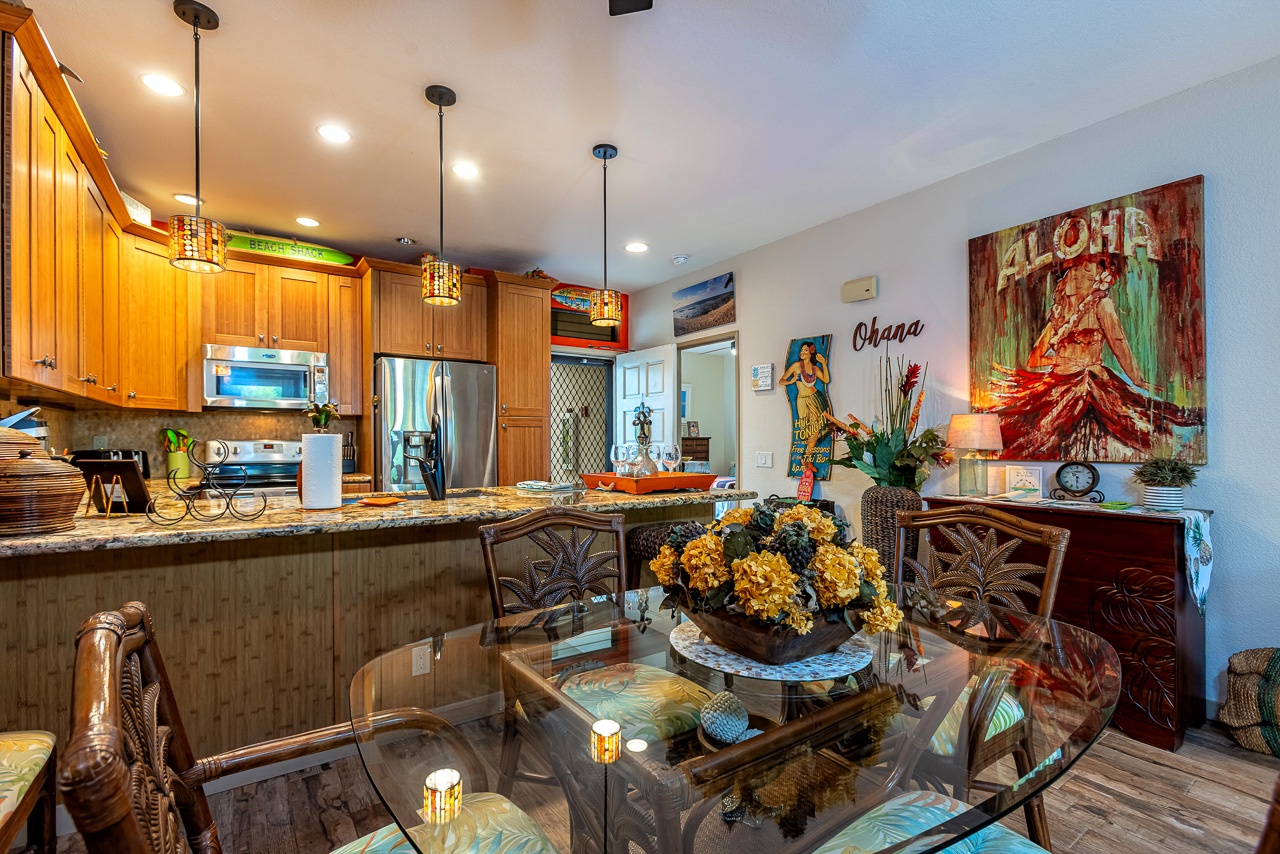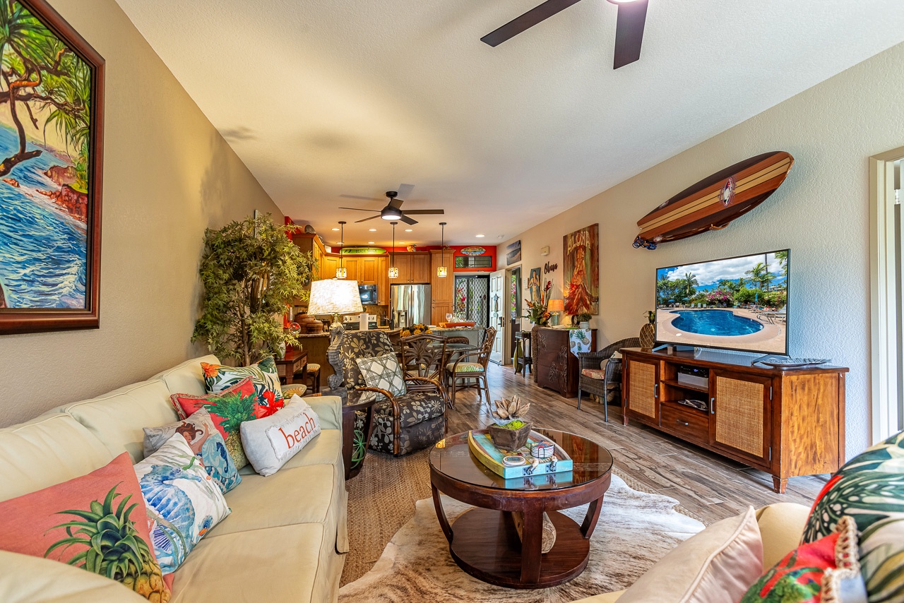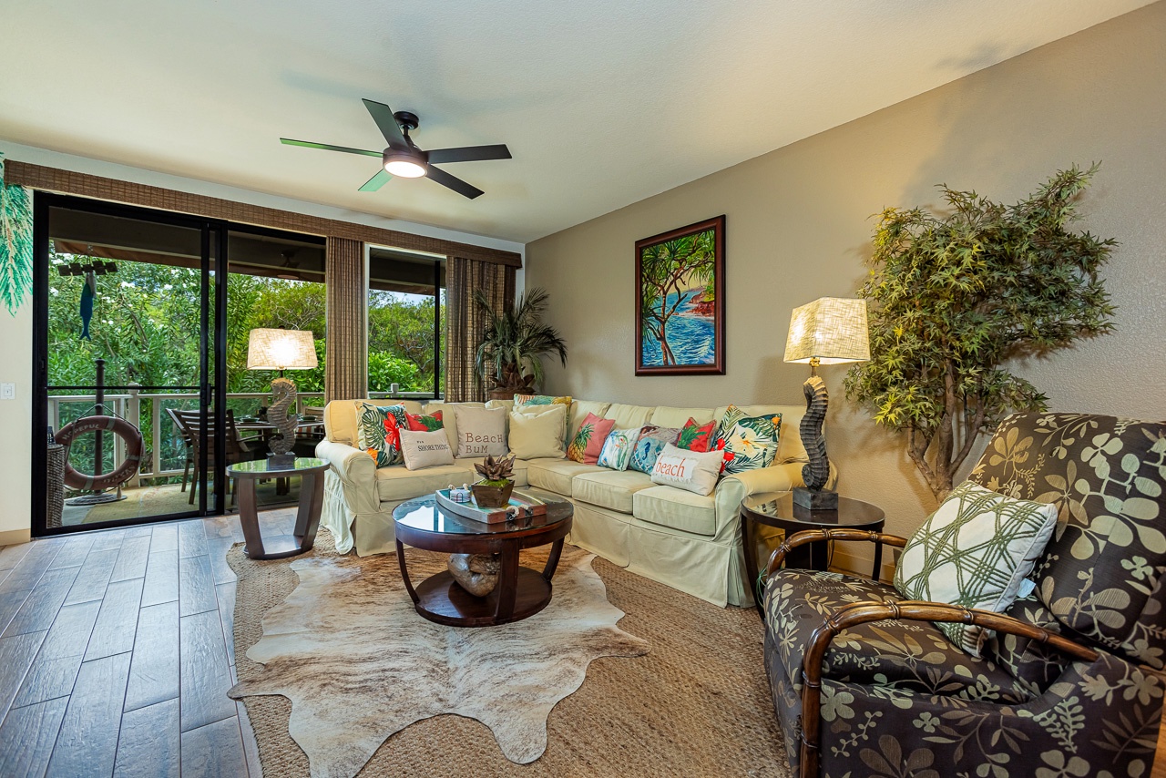 Incredible Renovation! Kick back and relax on your own private lanai and take in wonderful garden views, with some ocean and mountain views. Feel the wonderful trade winds and take in the aroma of the beautiful Plumeria trees and Hawaiian foliage. This spacious two-bedroom unit in the Grand Champions Villas comes fully stocked with all the amenities needed to make you feel as if you are in your own home.