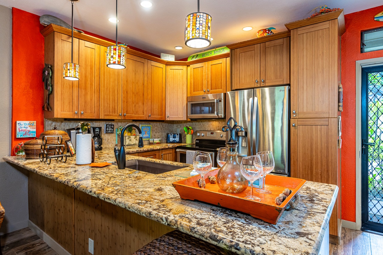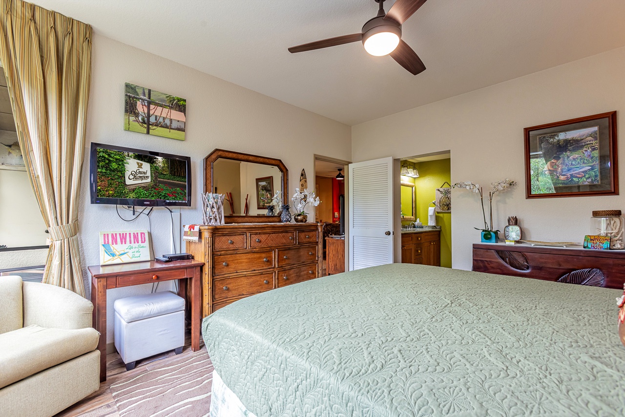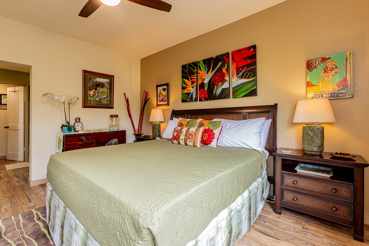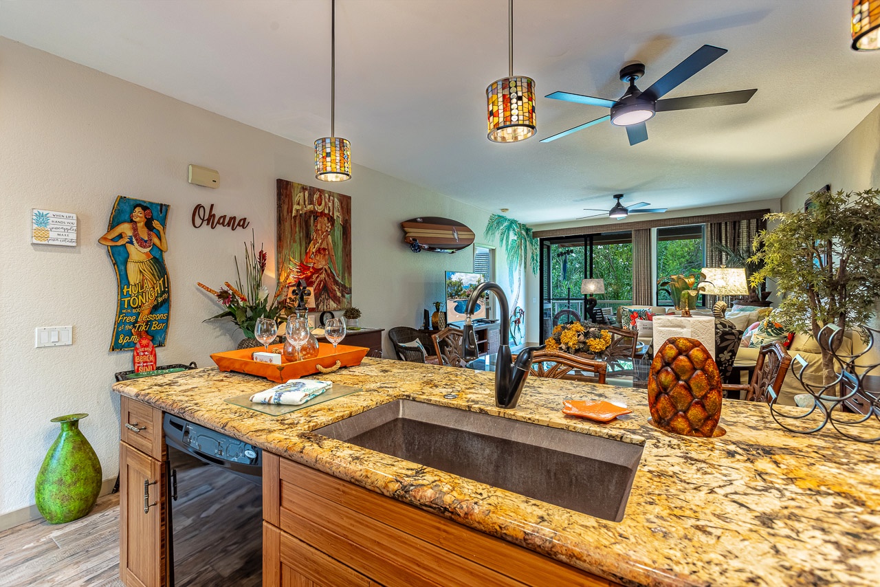 Incredible Renovation! Kick back and relax on your own private lanai and take in wonderful garden views, with some ocean and mountain views. Feel the wonderful trade winds and take in the aroma of the beautiful Plumeria trees and Hawaiian foliage. This spacious two-bedroom unit in the Grand Champions Villas comes fully stocked with all the amenities needed to make you feel as if you are in your own home.