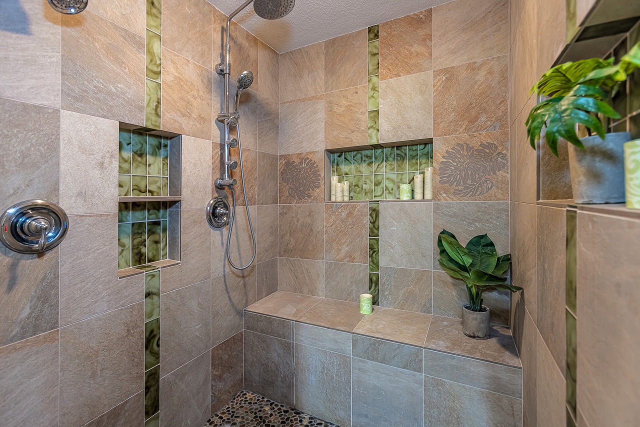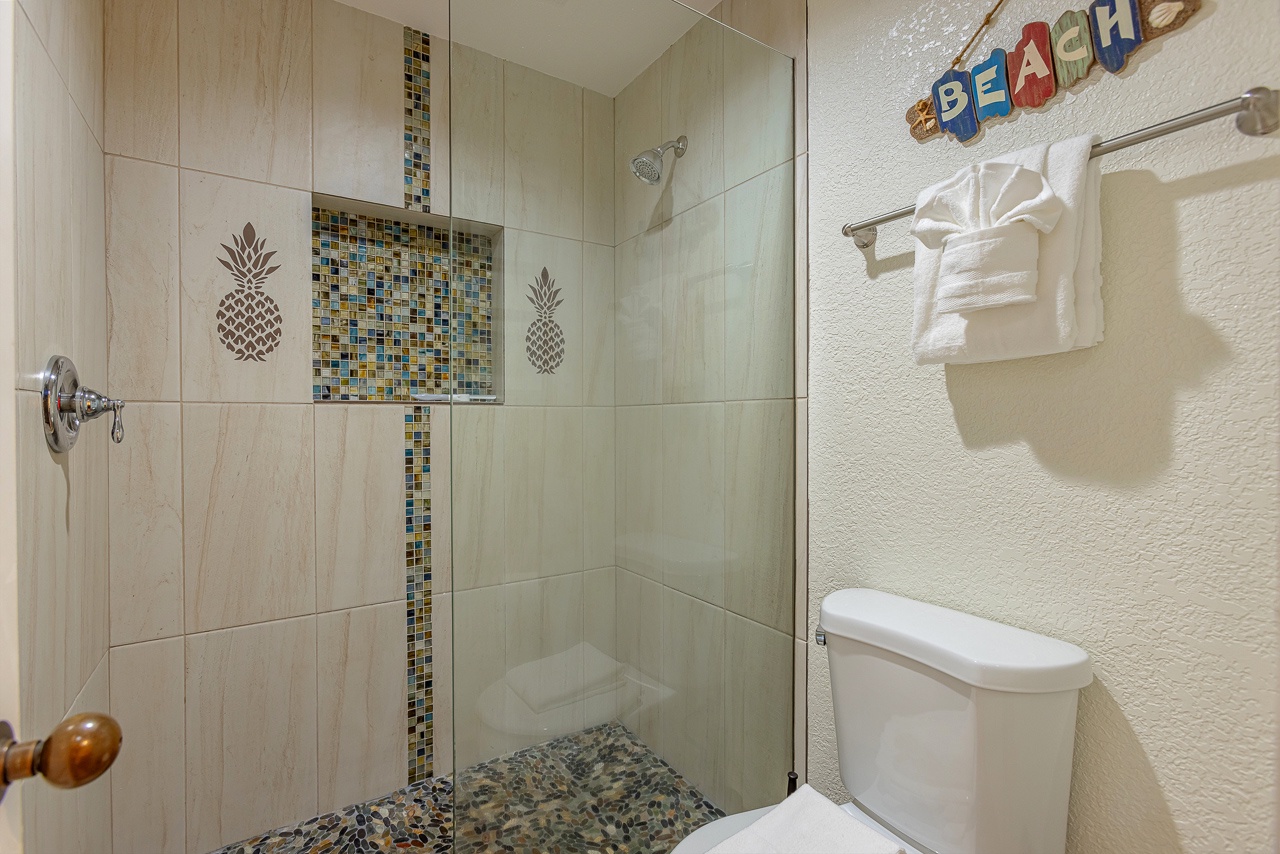 The Primary bedroom features a king bed and an ensuite with an amazing walk-in shower! The secondary bedroom has two twin beds that can be converted into a king bed upon request and an ensuite bathroom. Ground floor access makes trips to and from the beach, golf course, tennis courts, and pool a breeze!