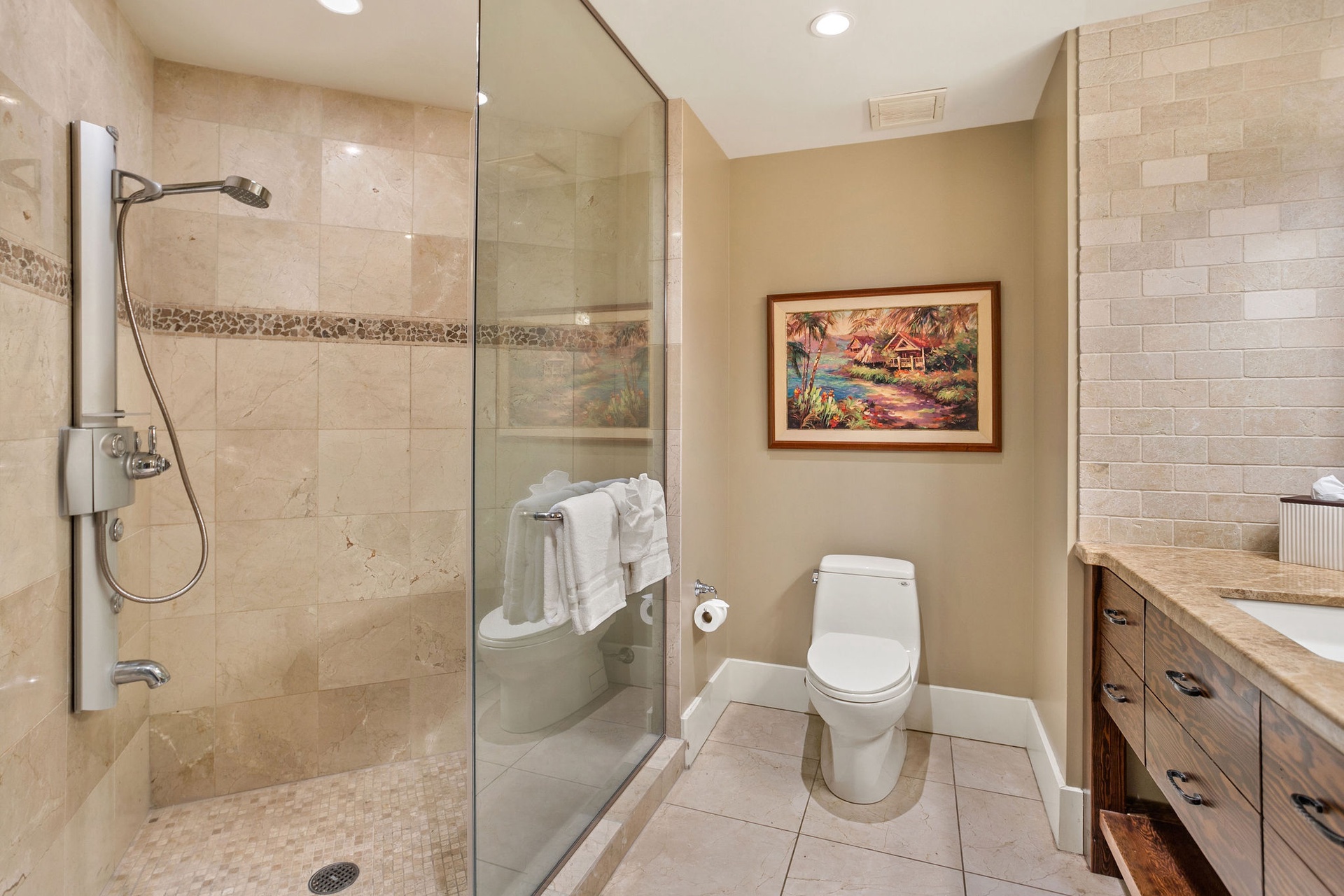 Second Suite (Lower Level): King bed, full ensuite, private lanai.