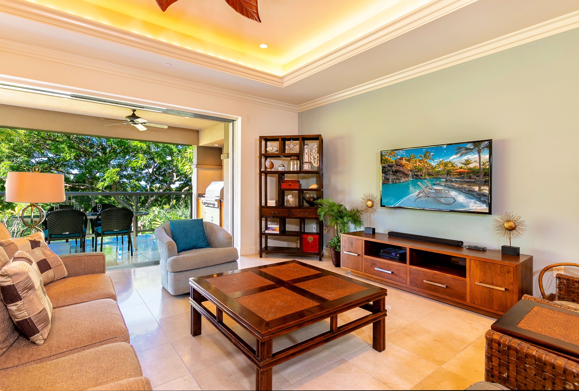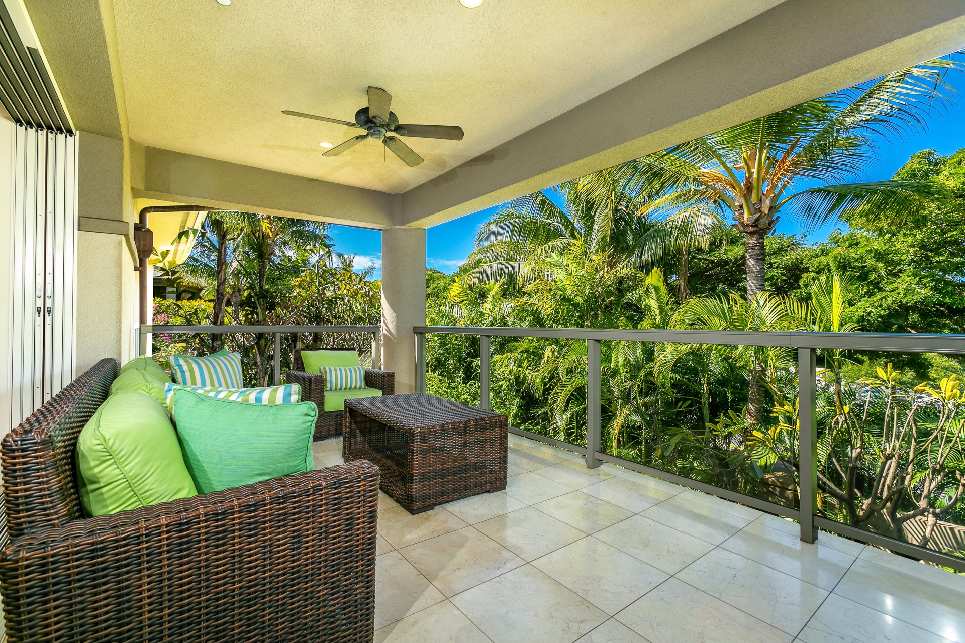Additional sofa seating makes the lanai a great space to relax