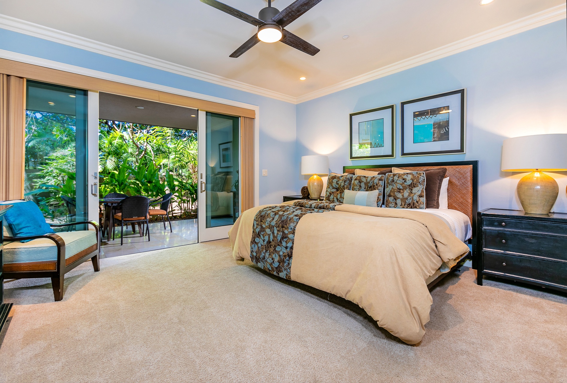 Beach access is located directly across the street through the adjacent resort. You are able to dine at any of the resort's restaurants, as well as set up spa appointments at nearby properties, but please note that pool access at the adjacent resort is not included with your reservation at this Ho'olei villa.