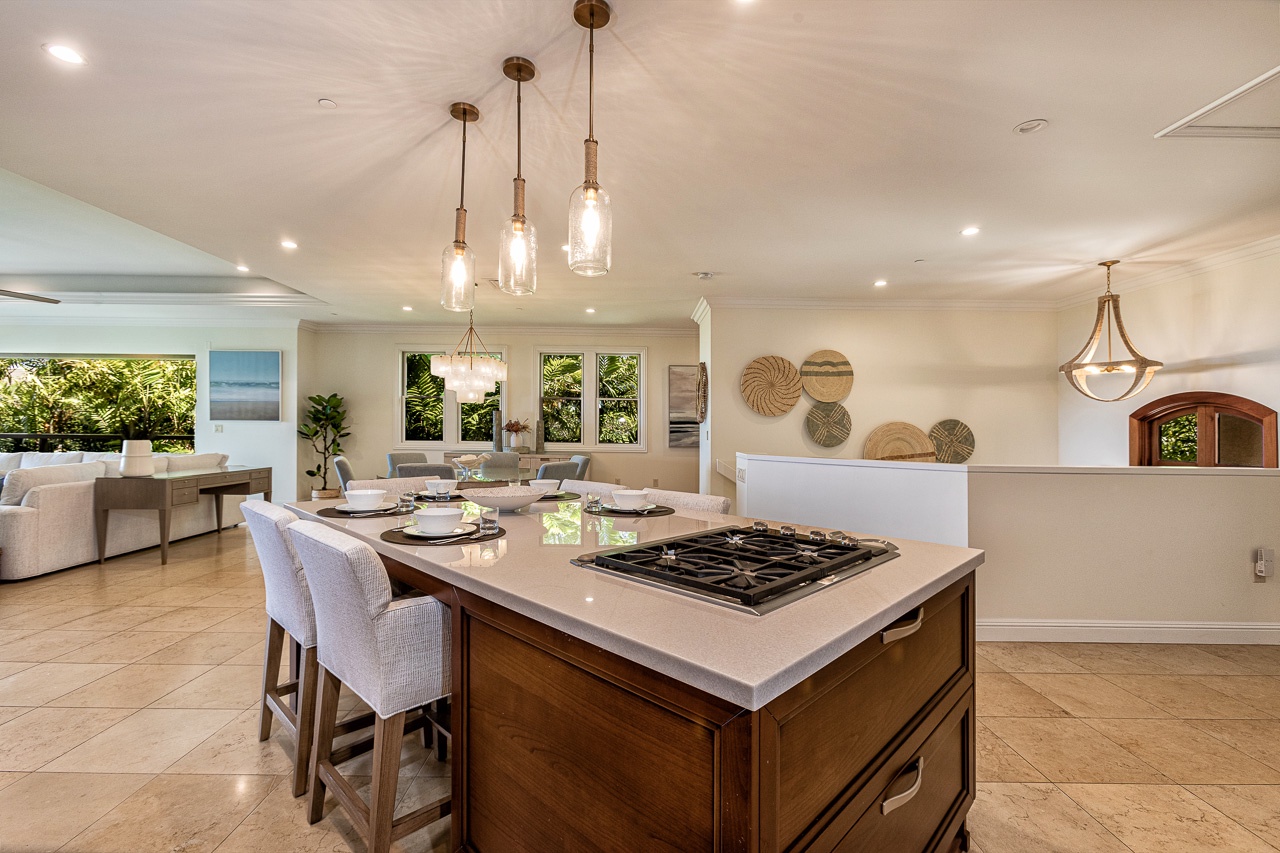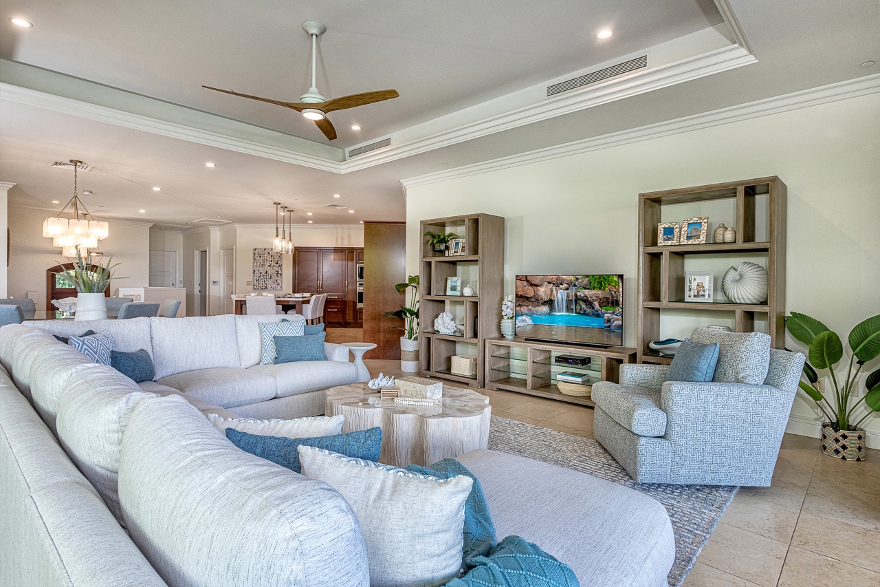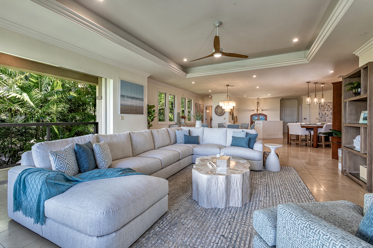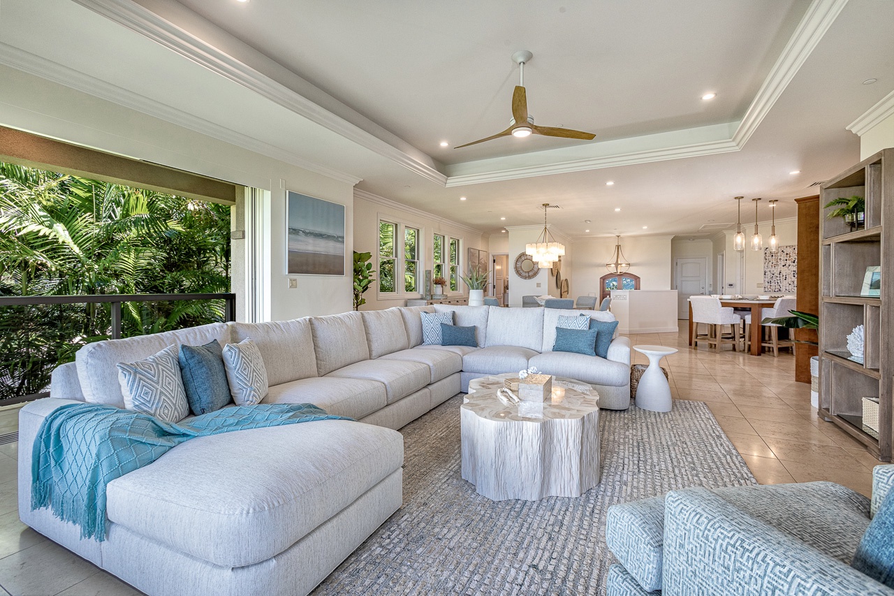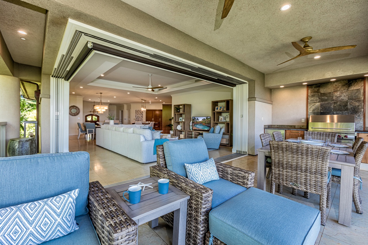 We especially loved the large open living/dining/kitchen area that opened up to the large lanai with comfortable seating, dining, BBQ & fridge.