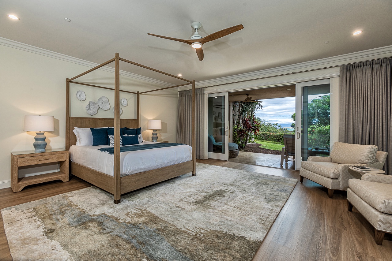 Primary bedroom with sitting area and private lanai.
