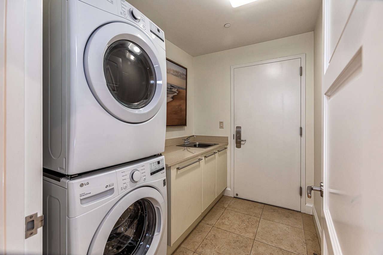 Laundry room with extra amenities.