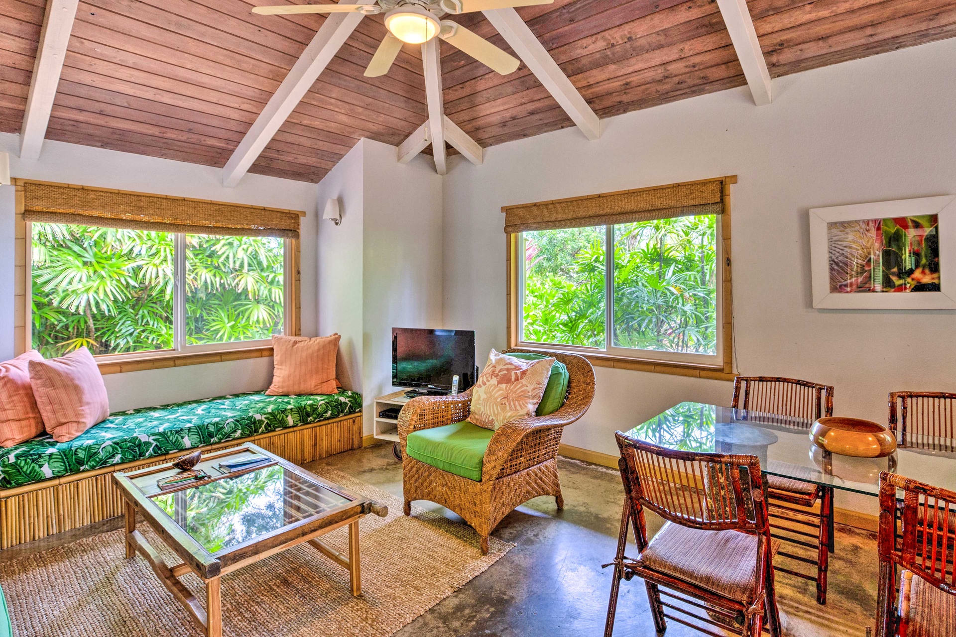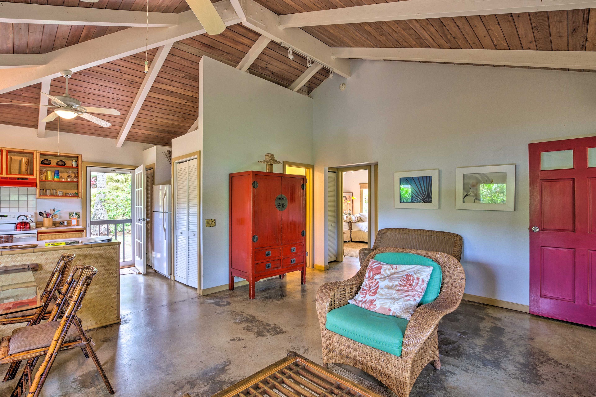 Welcome to your home away from home in beautiful Kapa'a! This enchanting 2-bedroom cottage offers the perfect blend of Hawaiian charm and modern comfort, nestled in a tranquil garden setting just steps from local attractions. Experience the magic of Kauai from this perfectly positioned retreat.
