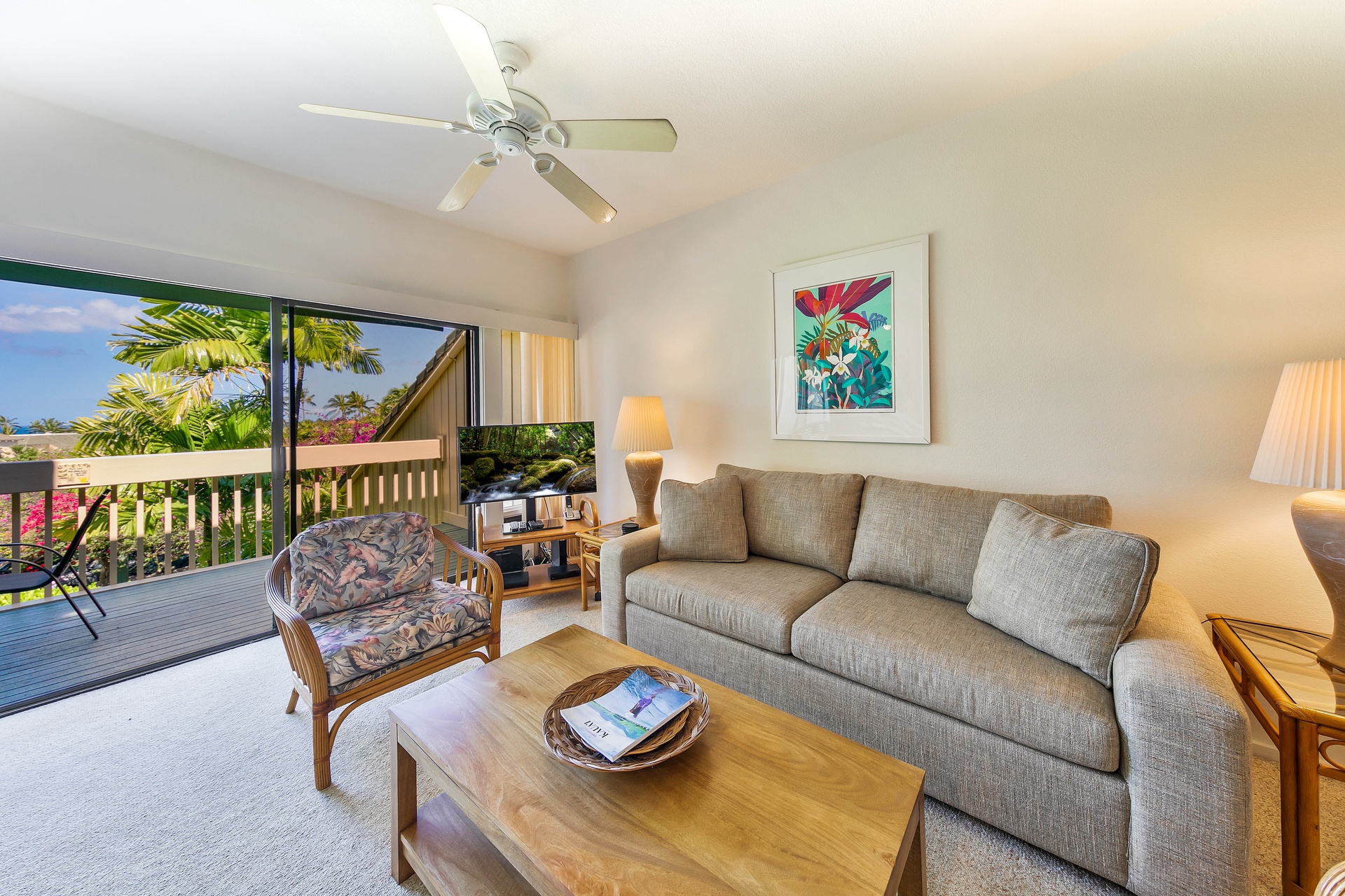 • Ocean-view lanai seating with retractable awning for indoor-outdoor living, rain or shine