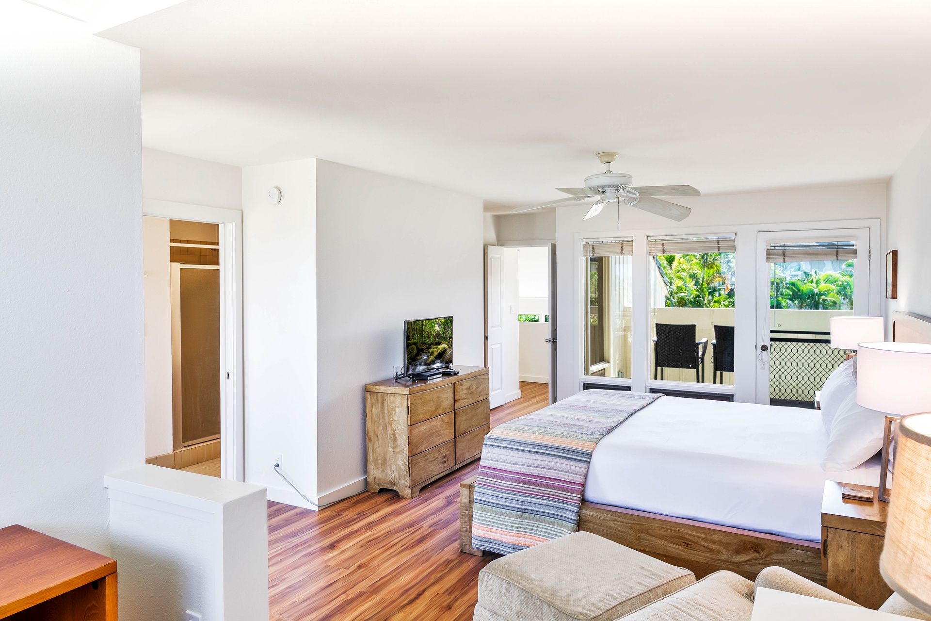 Poipu Kai is one of the best areas to stay in Poipu on the sunny south side of the Garden Island. The meandering greenbelt walking paths make for a nice stroll to some great beaches. Manualoha is THE closest to Brennecke's Beach and Poipu Beach Park, with the resort pool overlooking the beautiful coastline. These beaches are known for snorkeling, boogie boarding, surfing, swimming, turtle spotting, and whale watching in the winter. Poipu Beach Park is a lifeguarded beach.