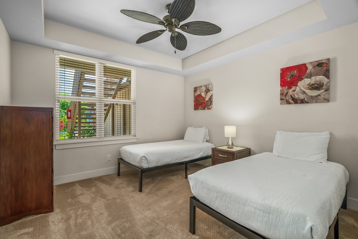 • Third Bedroom: Two twin beds with adjacent full bathroom
