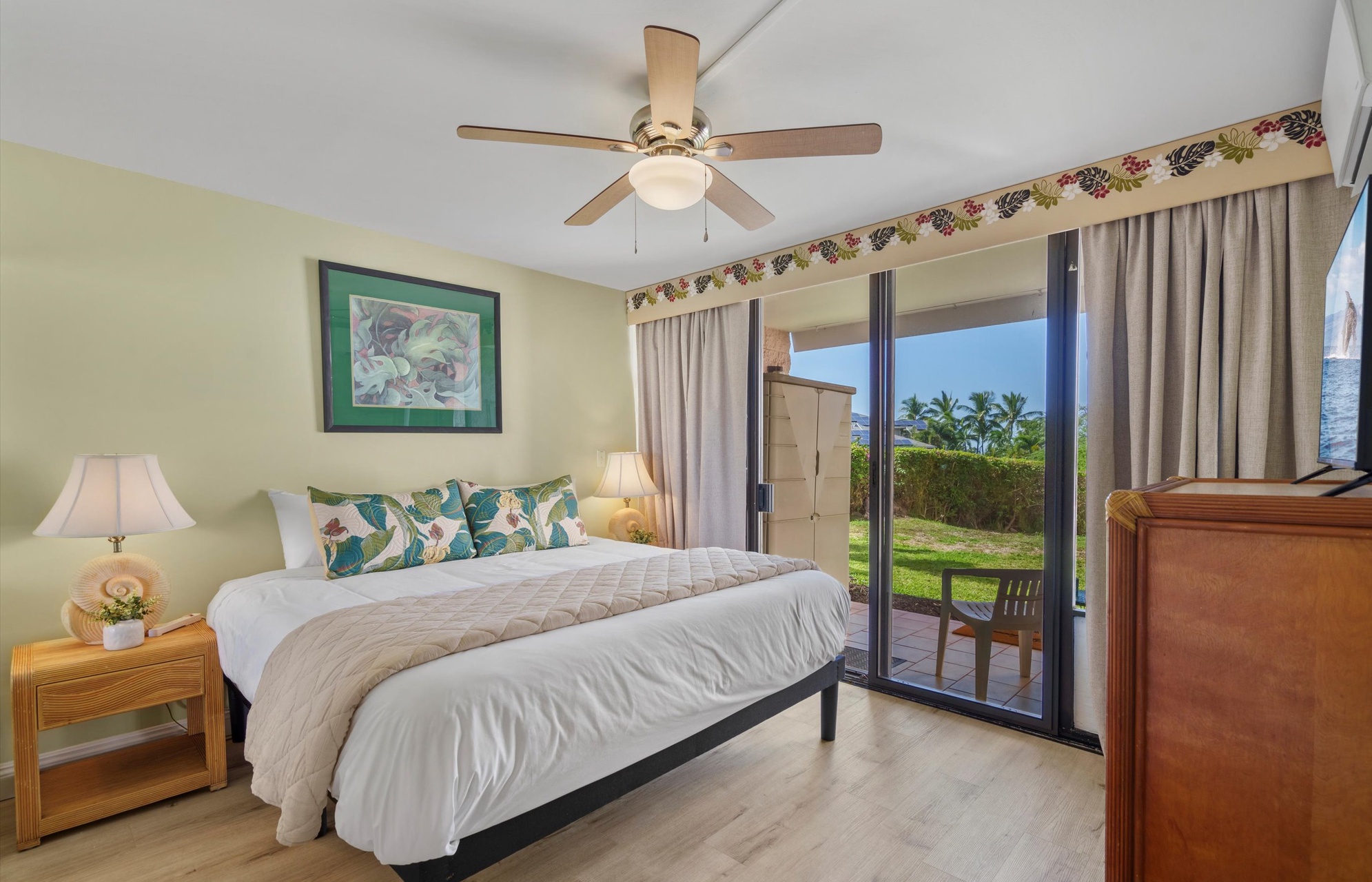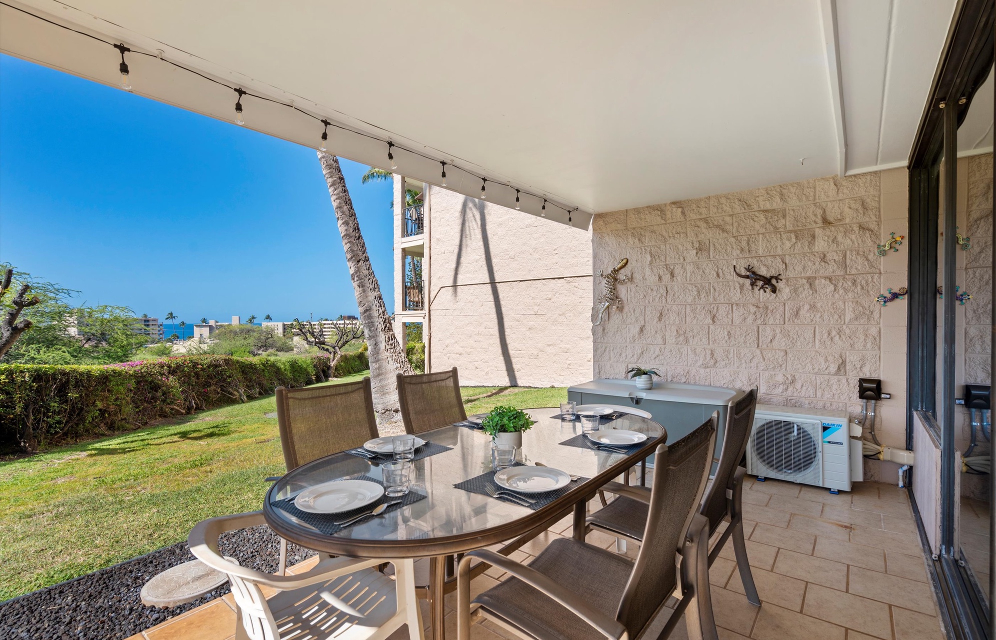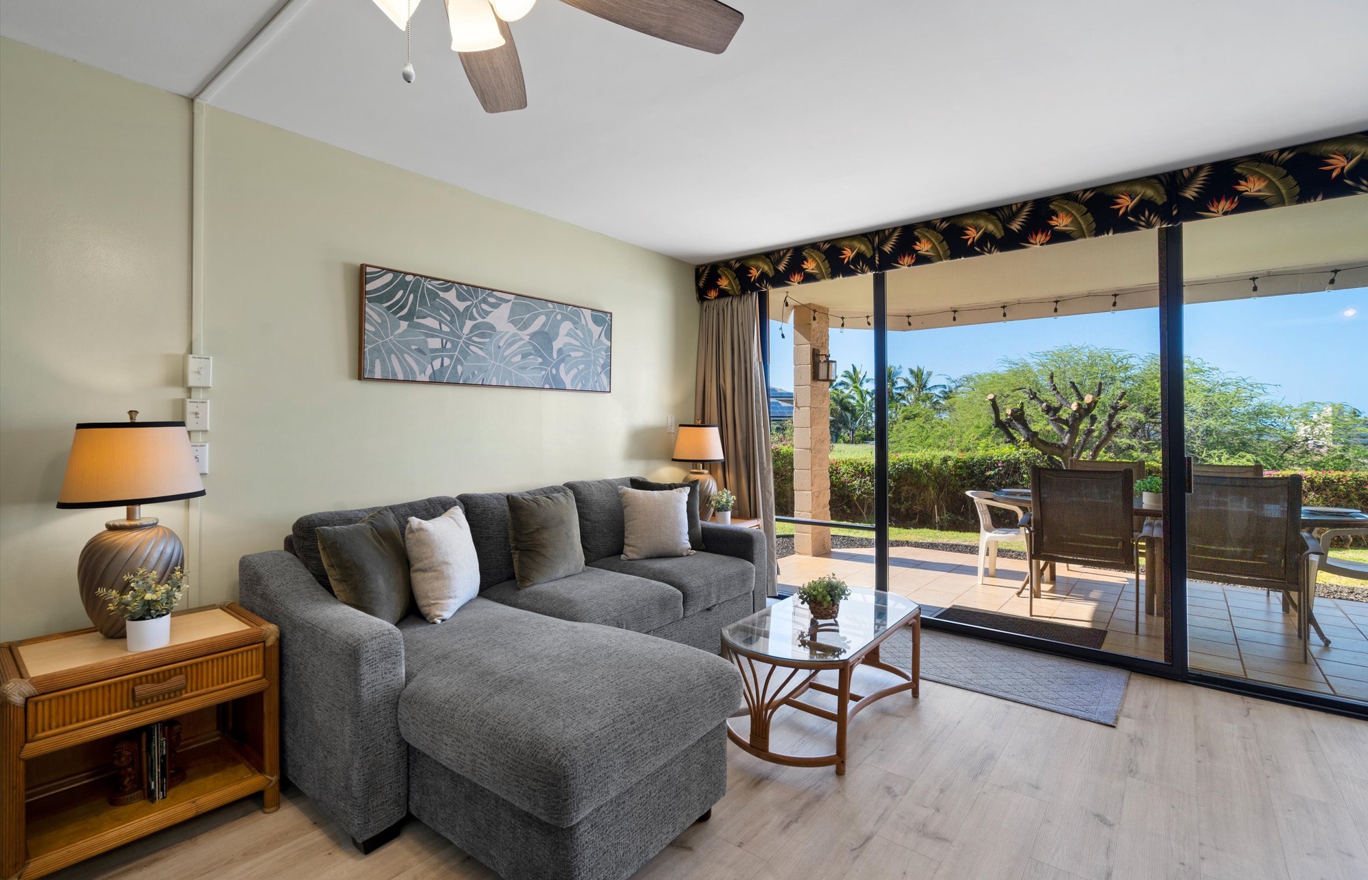 Welcome to Kihei Alii Kai D108, your perfect family-friendly Maui retreat just steps from South Kihei's pristine beaches. This newly renovated 2-bedroom, 2-bathroom condo features a spacious open-concept living area and can comfortably accommodate up to 7 guests. The primary bedroom boasts a new in 2025 king bed, en-suite bathroom with a luxurious tiled walk-in shower, private lanai, and ceiling fan. The guest bedroom offers both a queen and twin bed, while a pull-up sleeper sofa in the living room provides additional sleeping options. Enjoy the Ocean and Sunset Views along with Hawaiian breezes from your main lanai with seating for up to 6. Just off the lanais is a peaceful grassy area perfect for young ones to play.