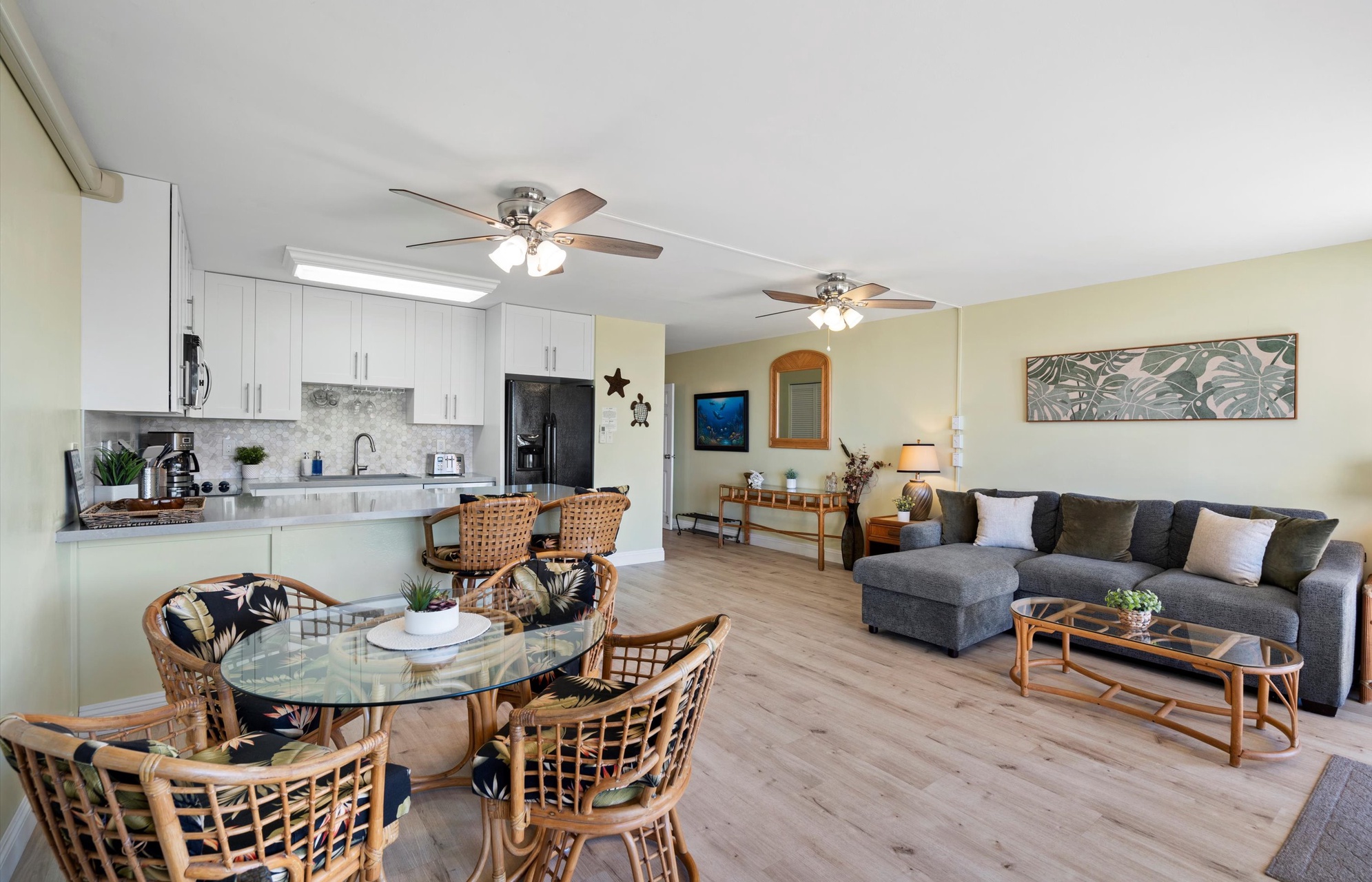 -Seating for 4 inside at the dining table along with 2 seats at the breakfast bar. Table for up to 6 on main ocean view lanai