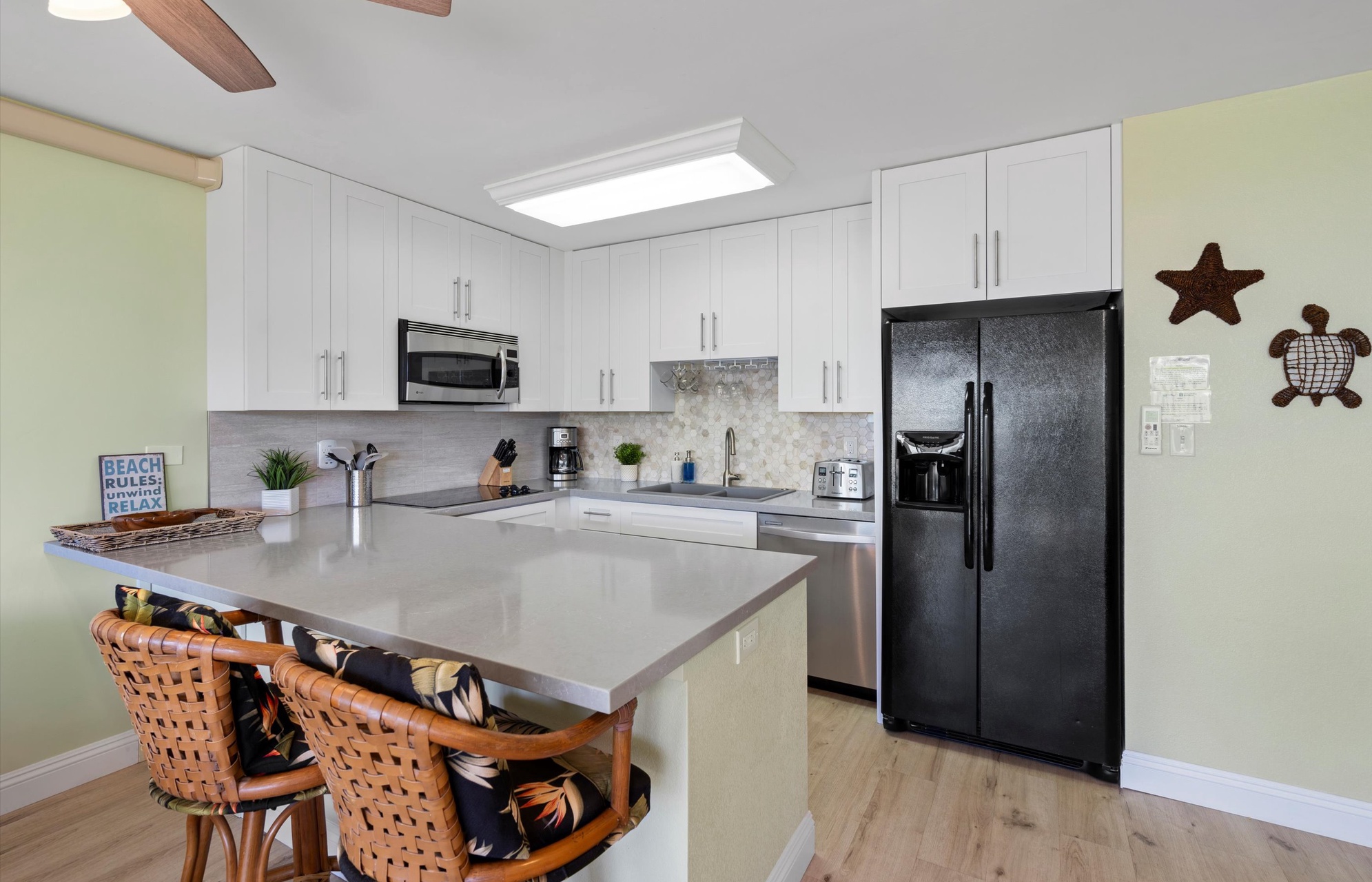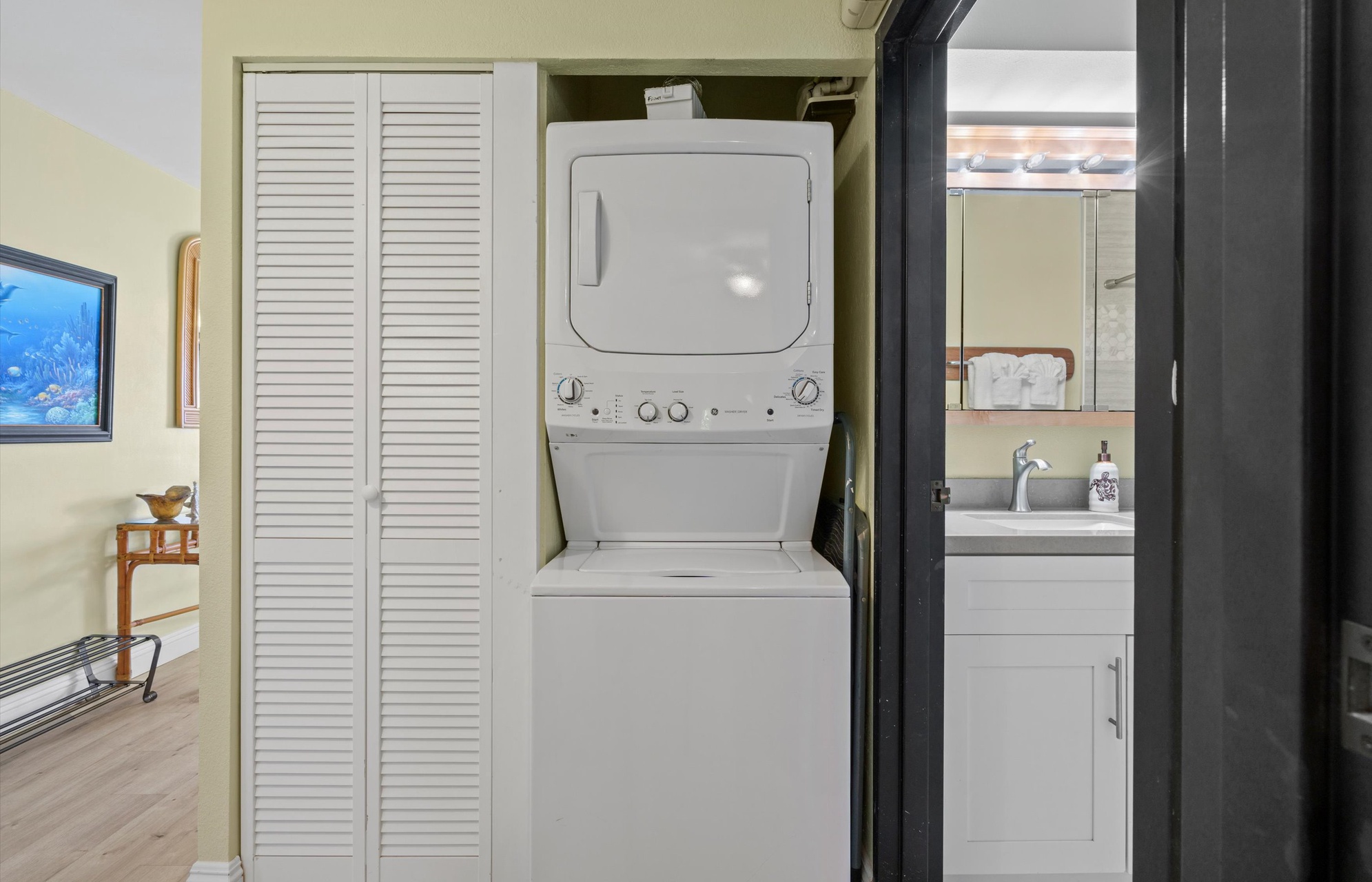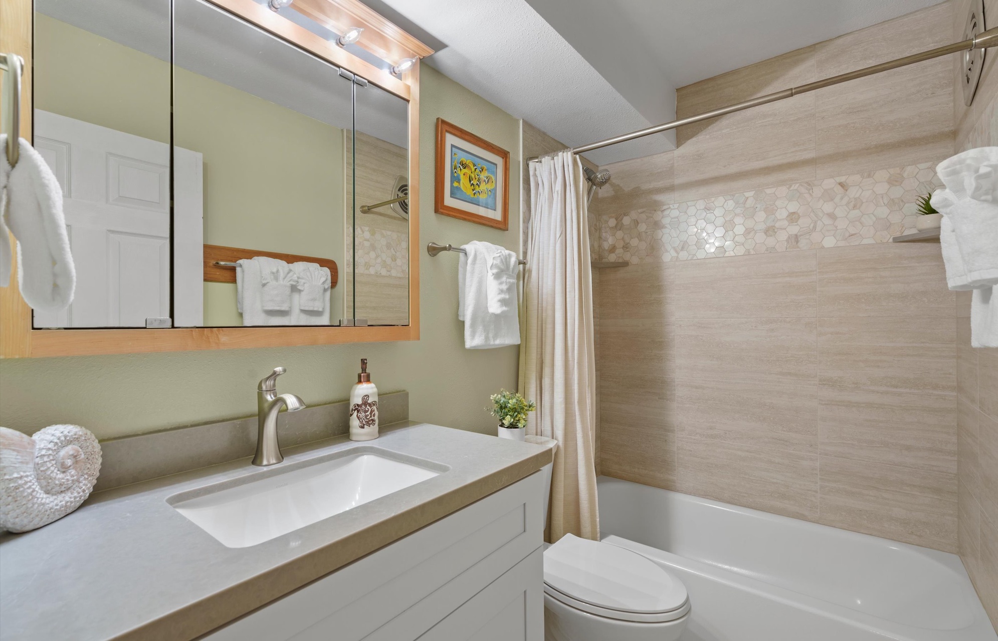 Experience the comfort of new efficient ductless air conditioning throughout the entire condo, including both bedrooms and living space. The fully remodeled kitchen features everything needed for family meals at home, with indoor dining for 4 plus additional seating at the breakfast bar. Family-friendly amenities include a Pack N Play, child-safe dishes and glassware, and in-unit washer and dryer for added convenience. The second updated bathroom, featuring a tub/shower combo, is ideally located next to the guest bedroom, making this condo perfect for extended families or friends traveling together.