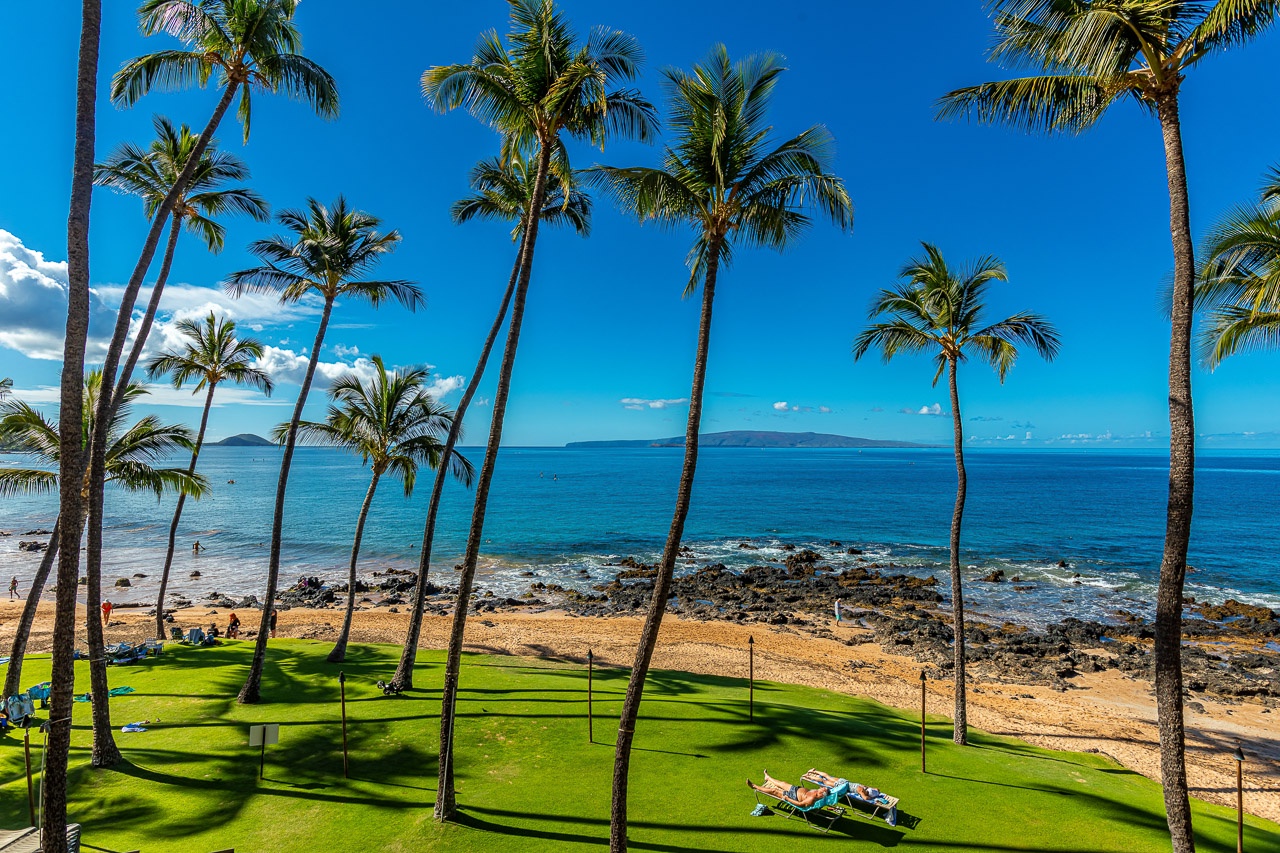 Mana Kai #203 is Maui Living at its best! We could talk about the ocean and sunset views all day but you won't get it until you experience them for yourself. Situated on the popular grass area at Keawakapu Beach. Take a look out of the lanai slider door for some of the most beautiful ocean and sunset views. During whale season, relax on the lanai and view Humpback whales slapping and breaching just yards off shore. Snorkeling is just a few steps away and you can see sea turtles snacking on the seagrass in the rocks from your private lanai.