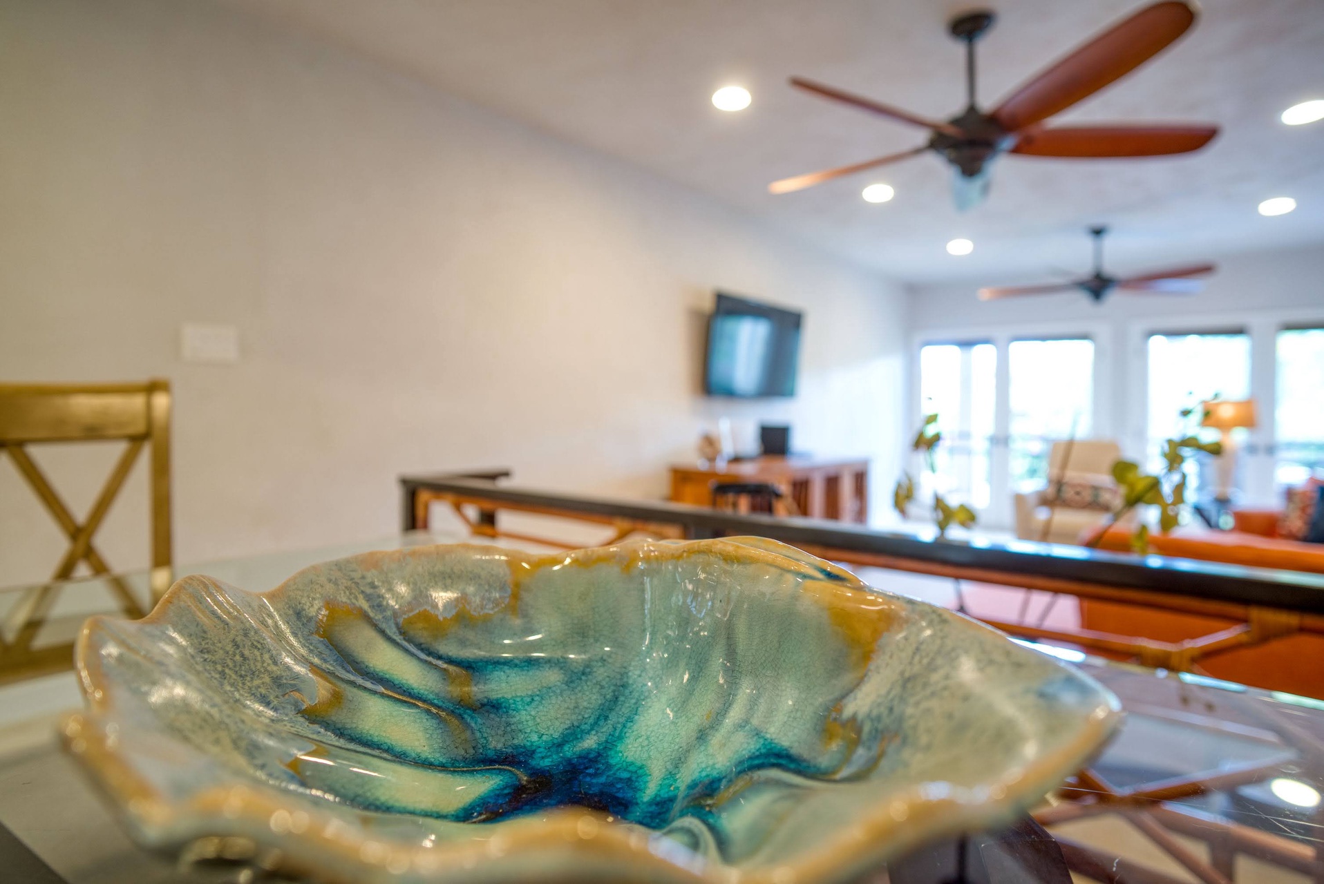 The primary suite offers a luxurious retreat! Drift off to sleep in the king bed with exquisite linens. Lounge on your lanai with access from your primary suite. Complete with flat-screen TV, ceiling fan, window AC, en suite bath with a striking tiled shower. Washer/dryer allow for lighter packing.