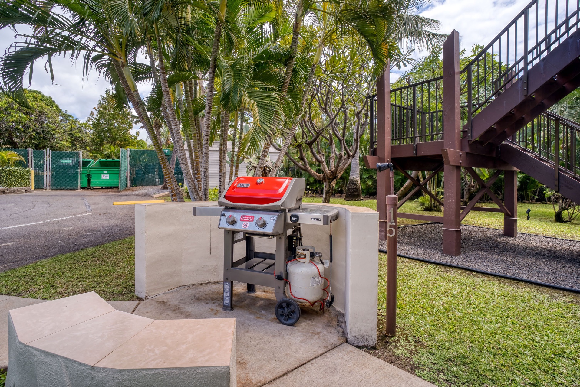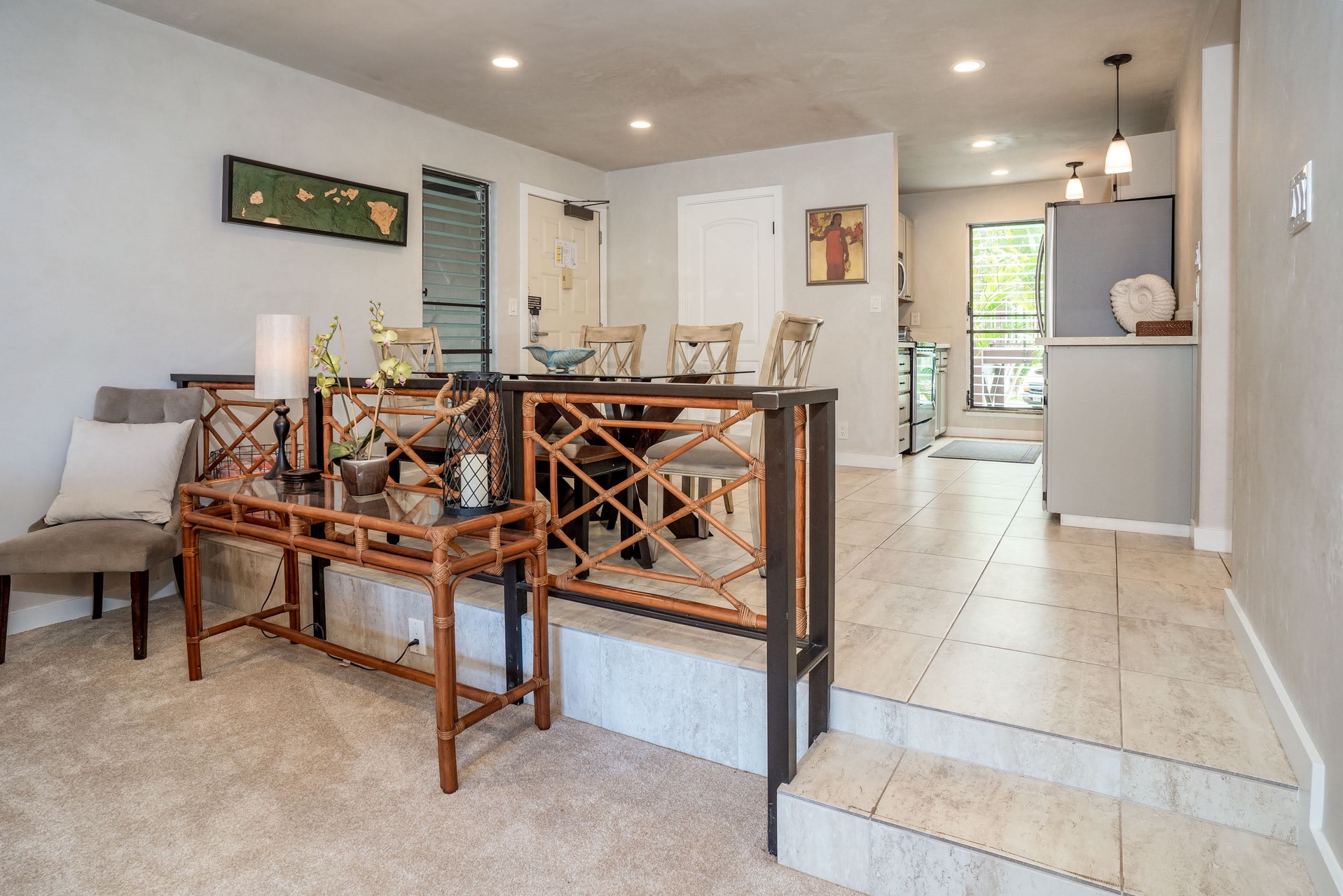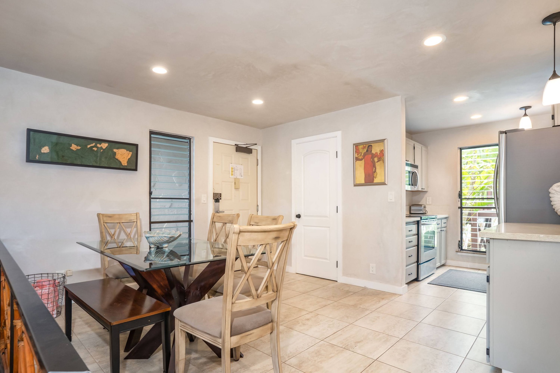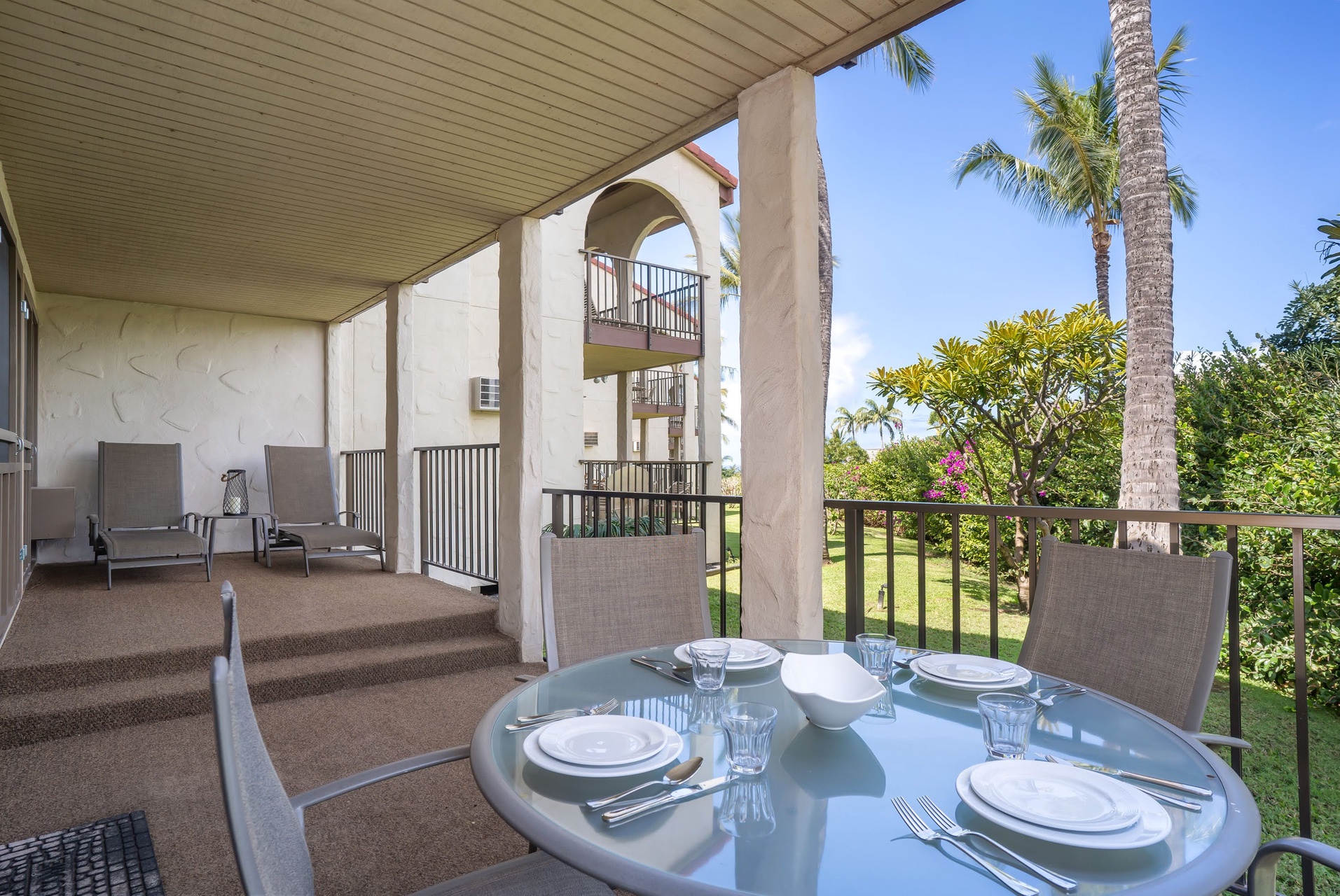 As you enter this spacious condo you are welcomed by the tasteful décor. The quaint kitchen is fully equipped with plate ware and utensils as well as all of the cooking items any chef would need. Dining area offers seating for six. The expansive lanai right off the living area allows for enjoyment of the lush grounds. Dine al fresco with seating for four.