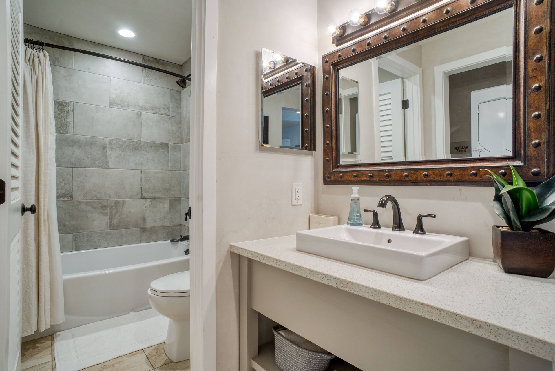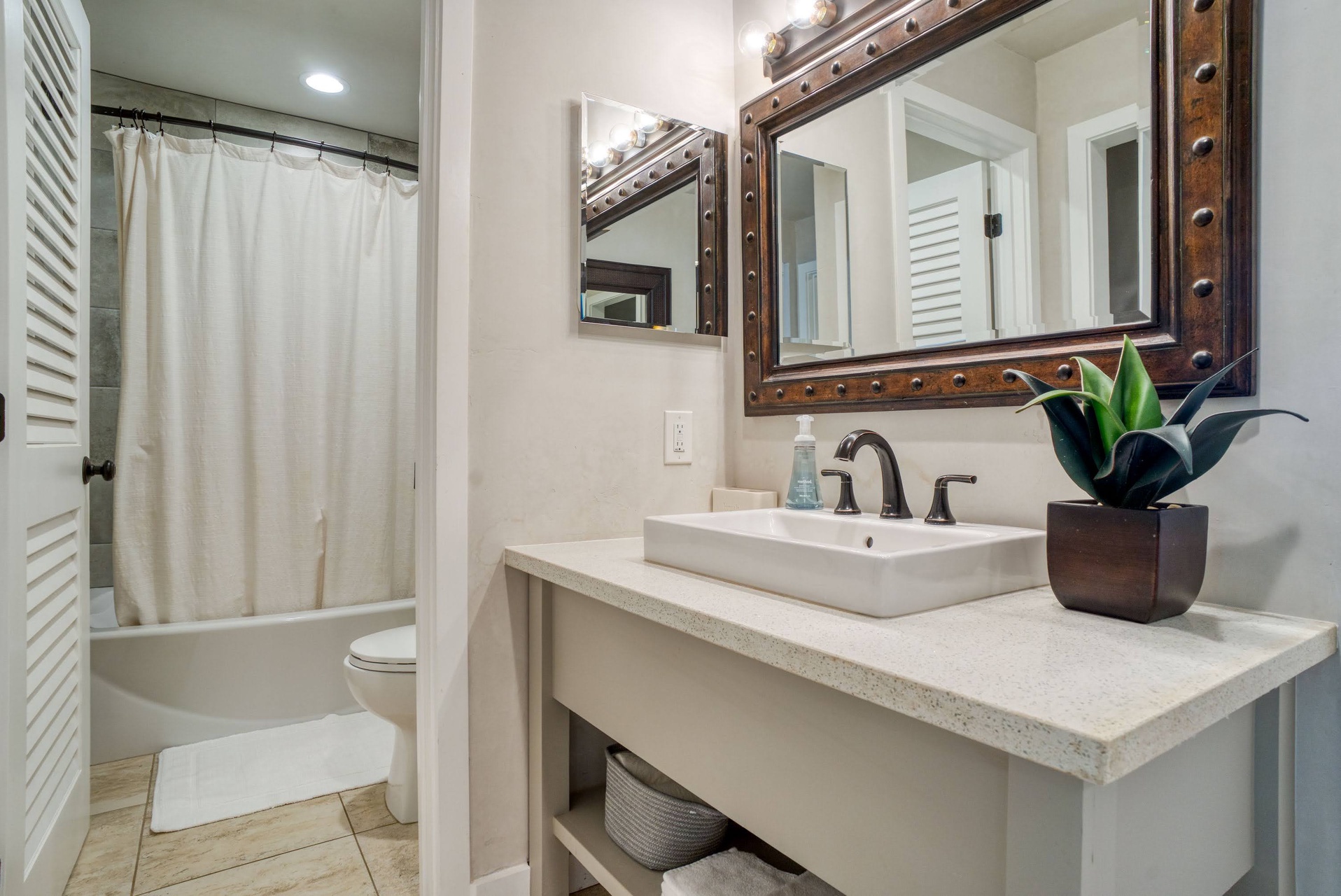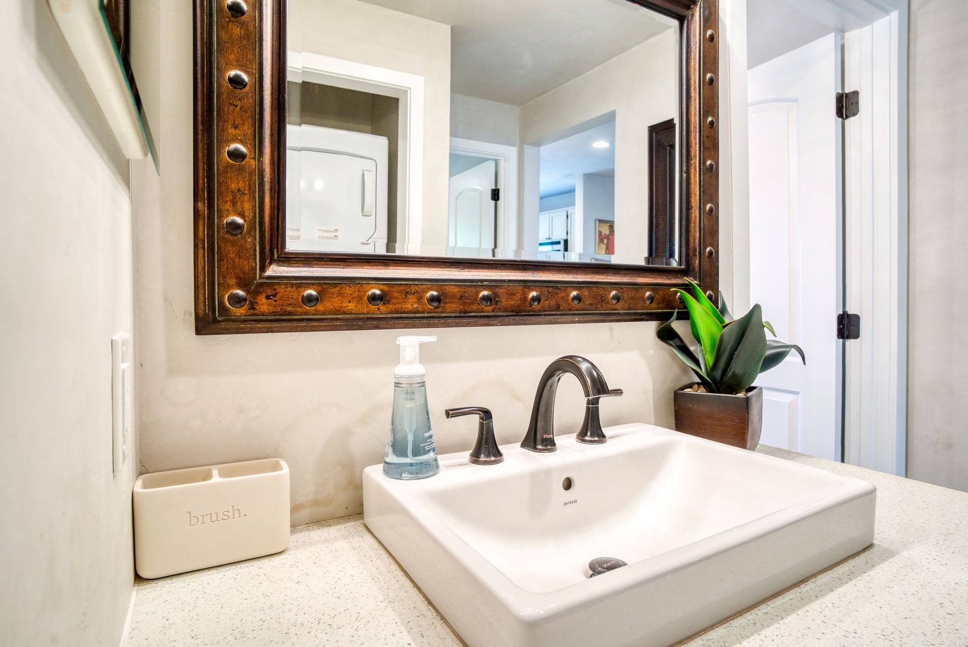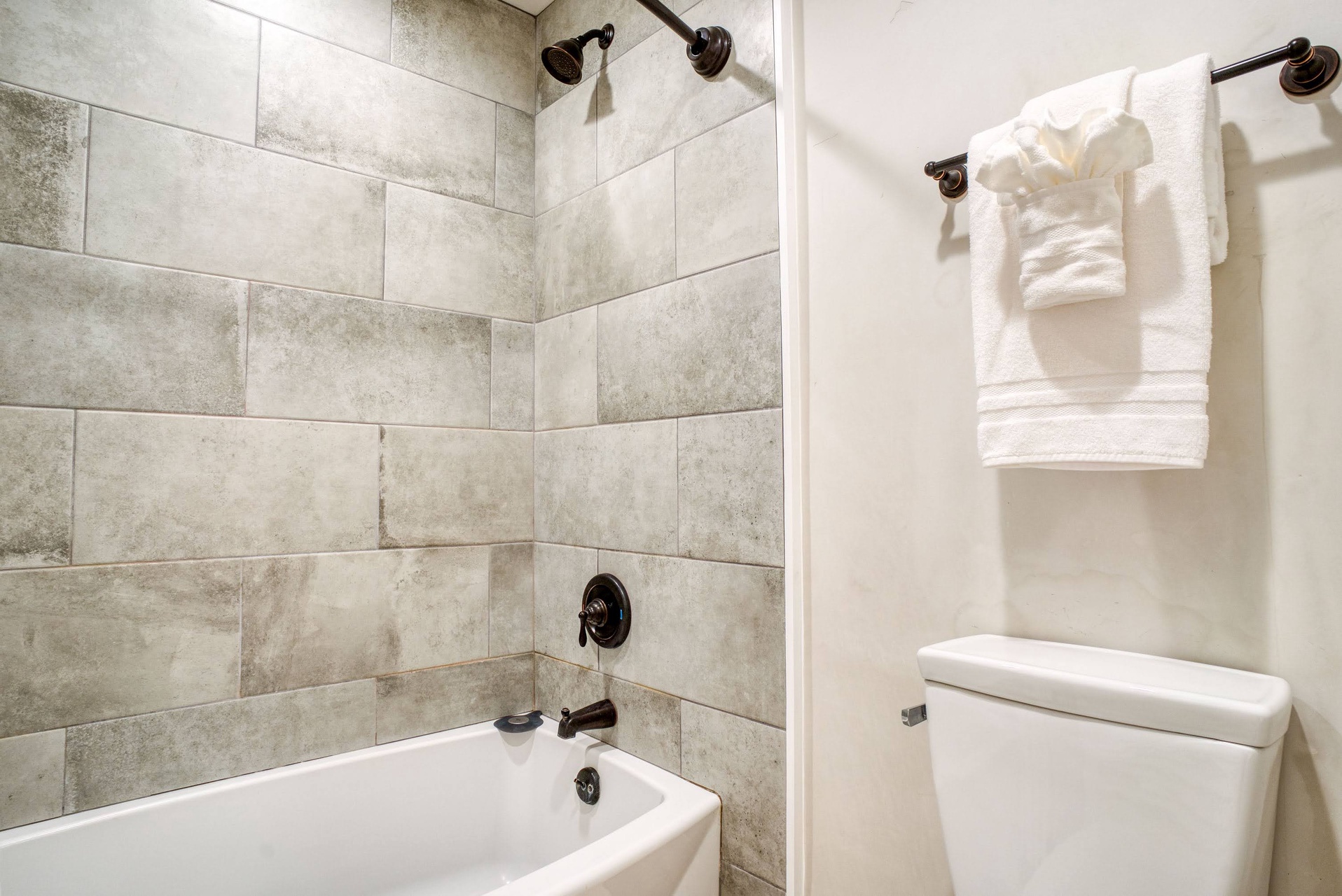 The guest bath offers a luxury spa feel, with attractive counters and fixtures. There is a shower-tub combo and is conveniently off the guest bedroom.
