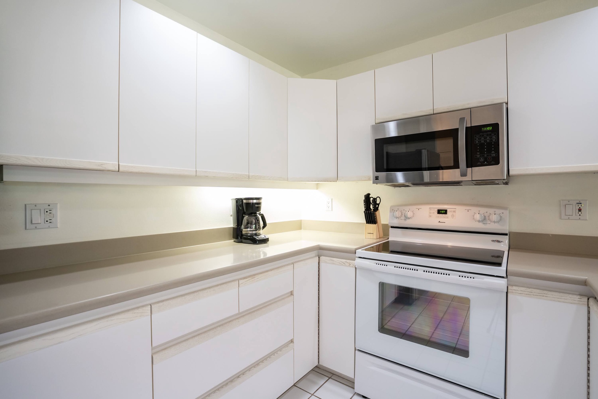 The kitchen is updated with everything needed to prepare meals