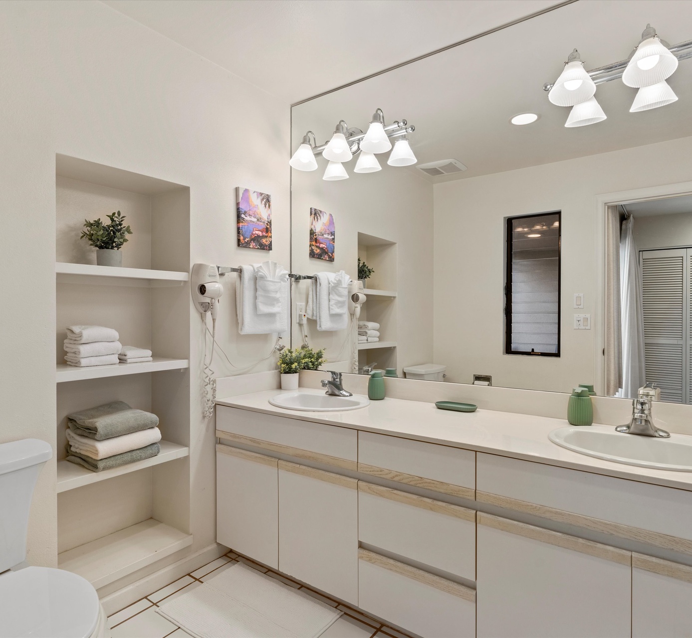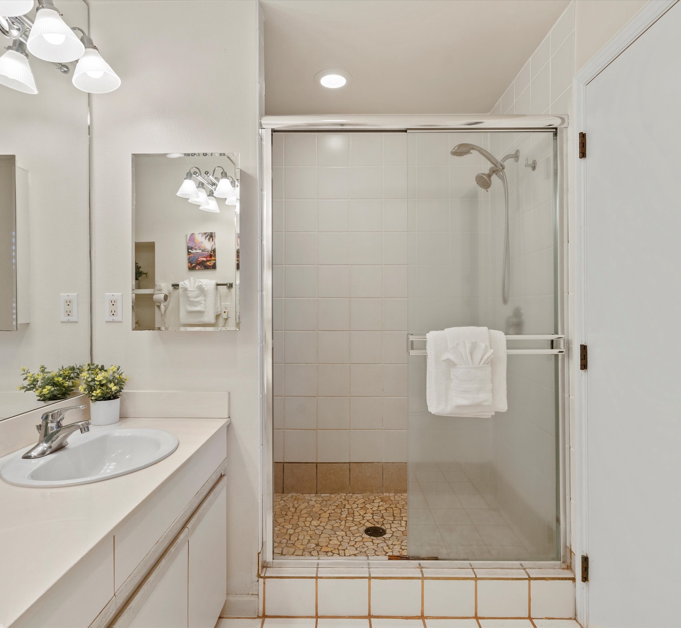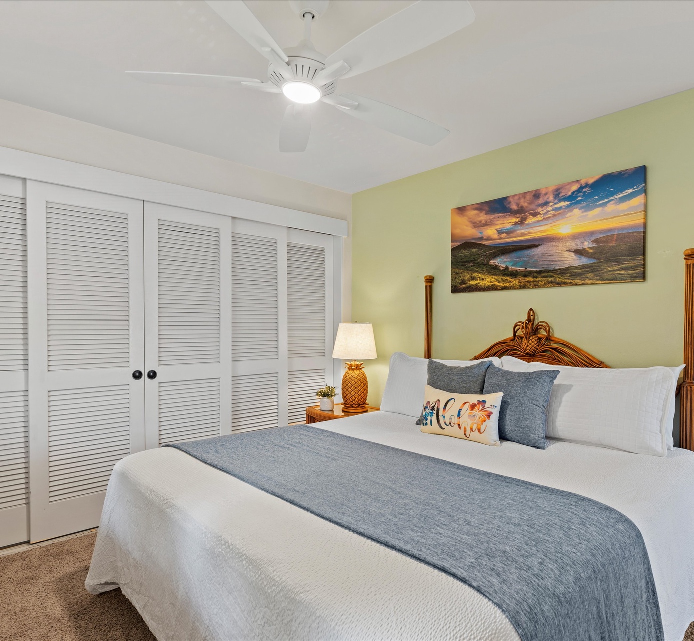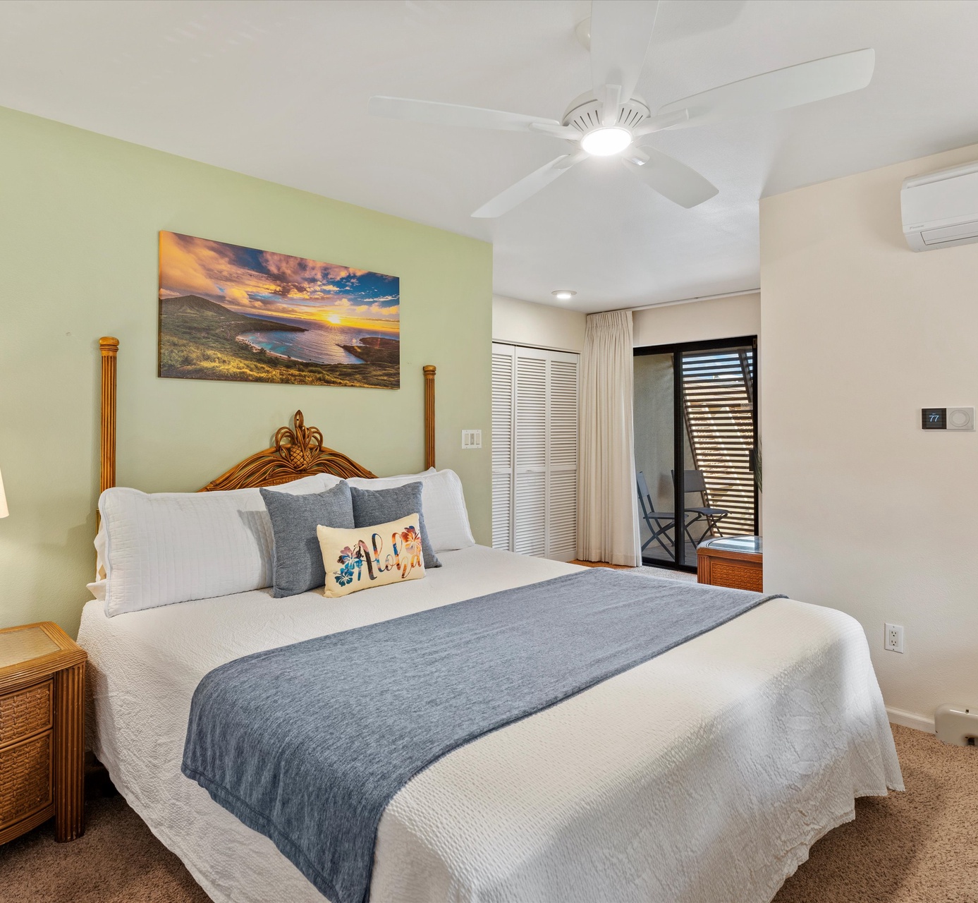 Escape to this spacious 2-bedroom, 2-bathroom loft condo at Maui Kamaole J209. Featuring an open living area, large primary bedroom with King bed, and a guest room with a Queen and a Twin bed, this condo comfortably sleeps up to 6 guests. Enjoy the lush tropical gardens and peeks of the ocean from your large main, lanai. Also catch the beautiful sunset colors every evening. Fully equipped kitchen allows for meals enjoyed at home. With efficient split AC, ample dining, and all the comforts of home, Maui Kamaole J209 is the perfect home base for your Maui adventure.