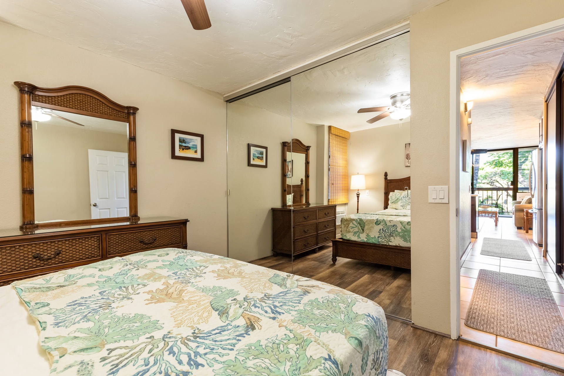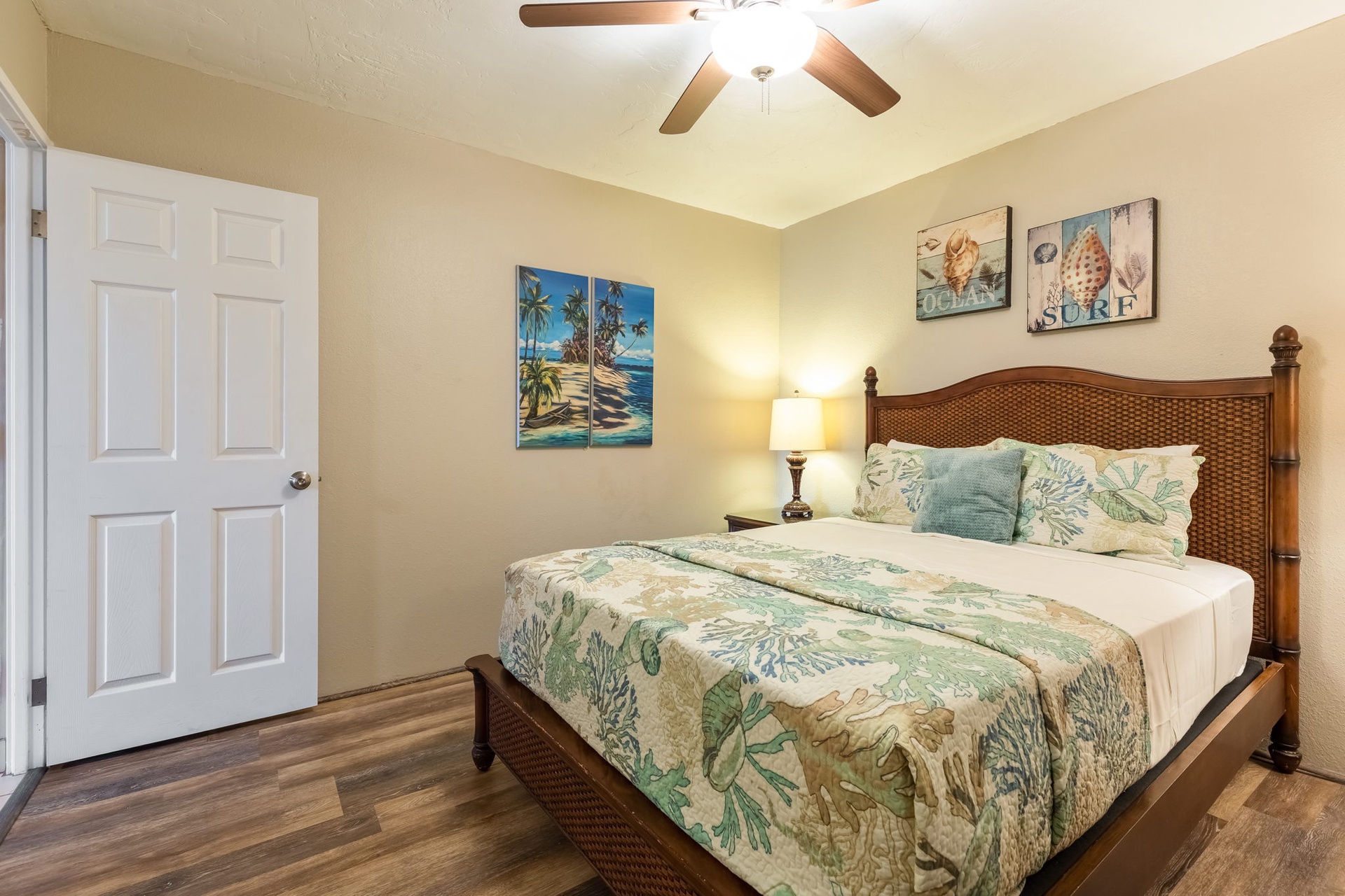 Beachy vibes in this primary bedroom