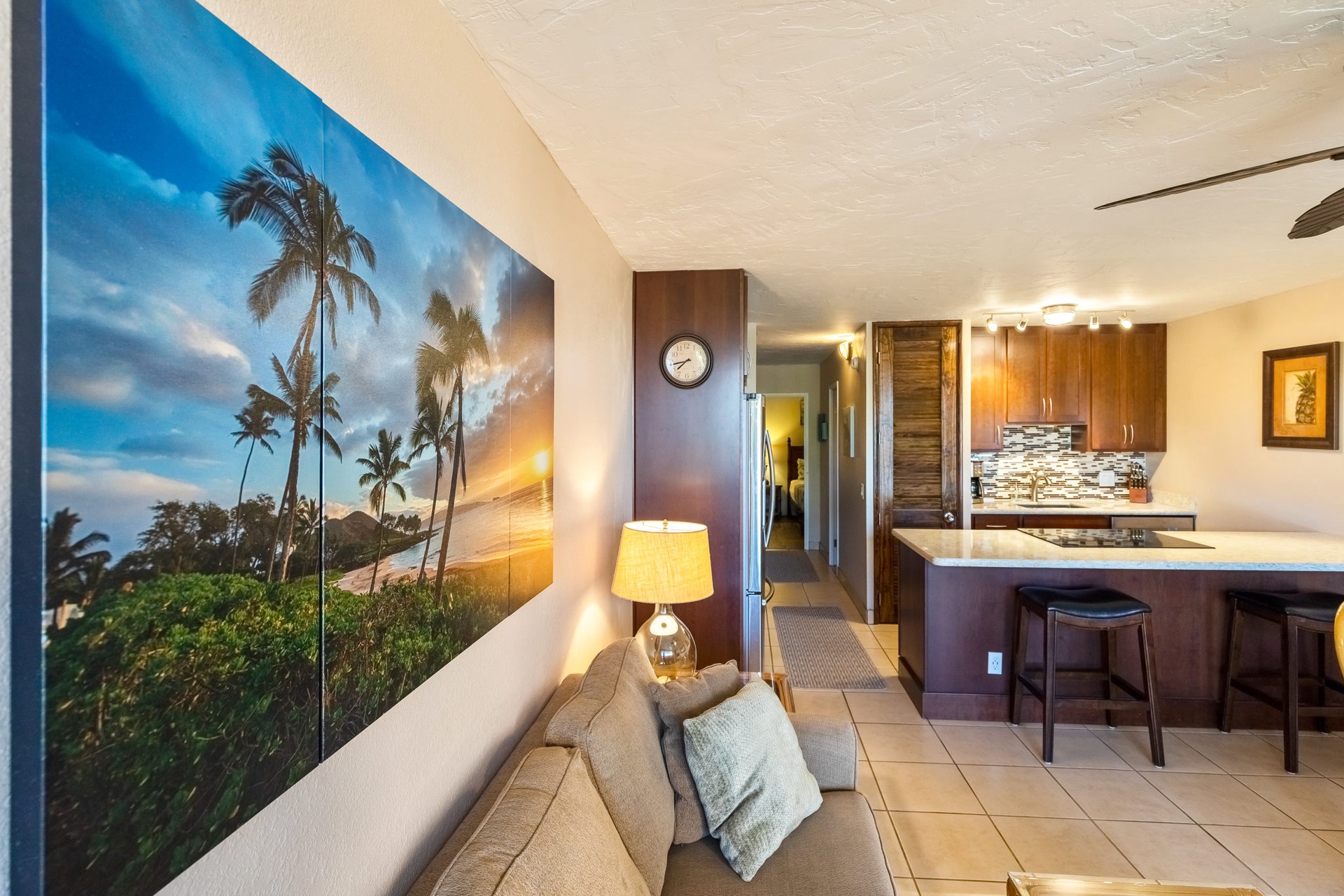 Welcome to Maui Vista 2213! This striking condo is the perfect location for your Maui getaway. Its open and inviting charm is immediately apparent as you enter. Floor-to-ceiling sliding glass doors lead to a private lanai where you can take in the tropical setting while sipping your favorite beverage.