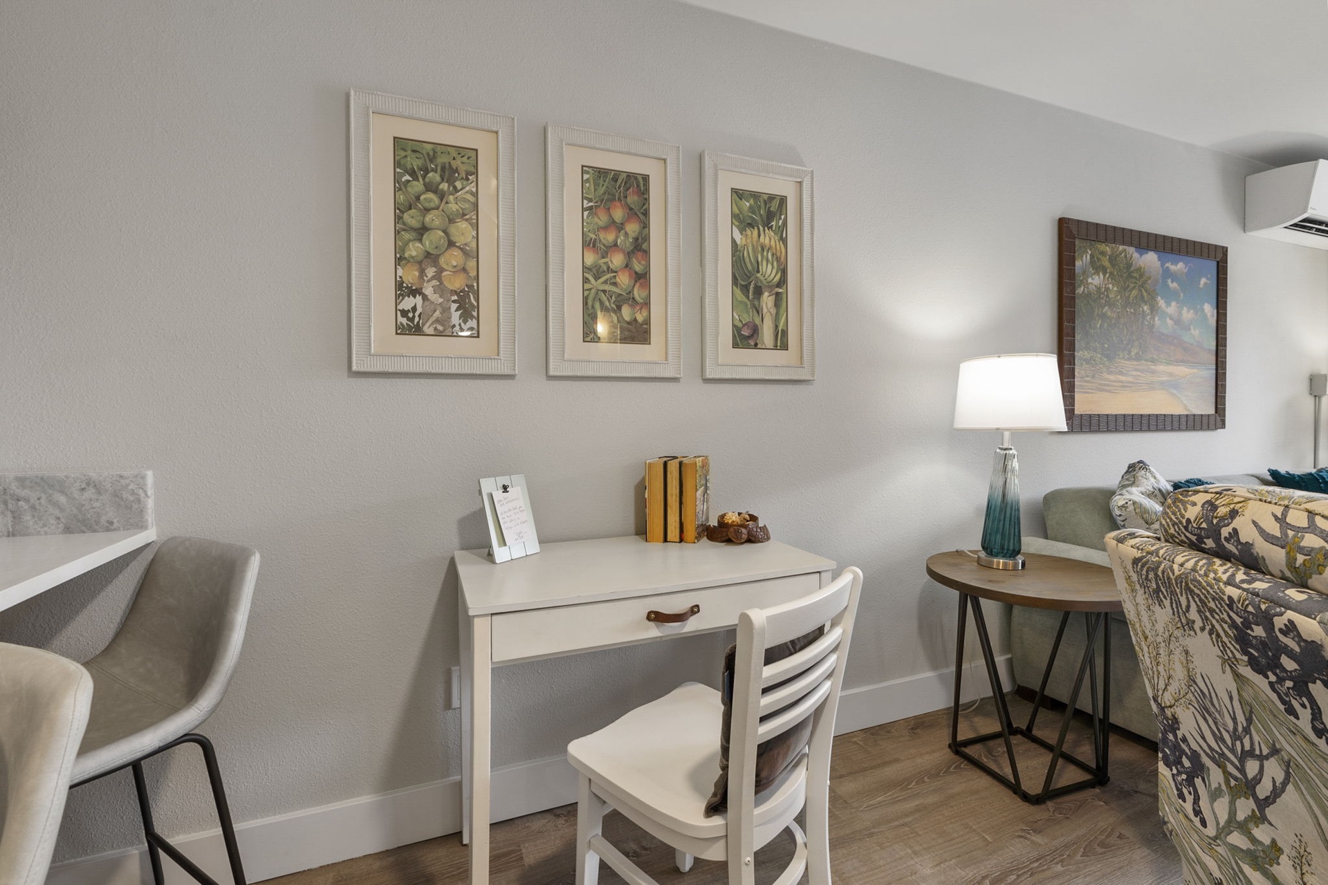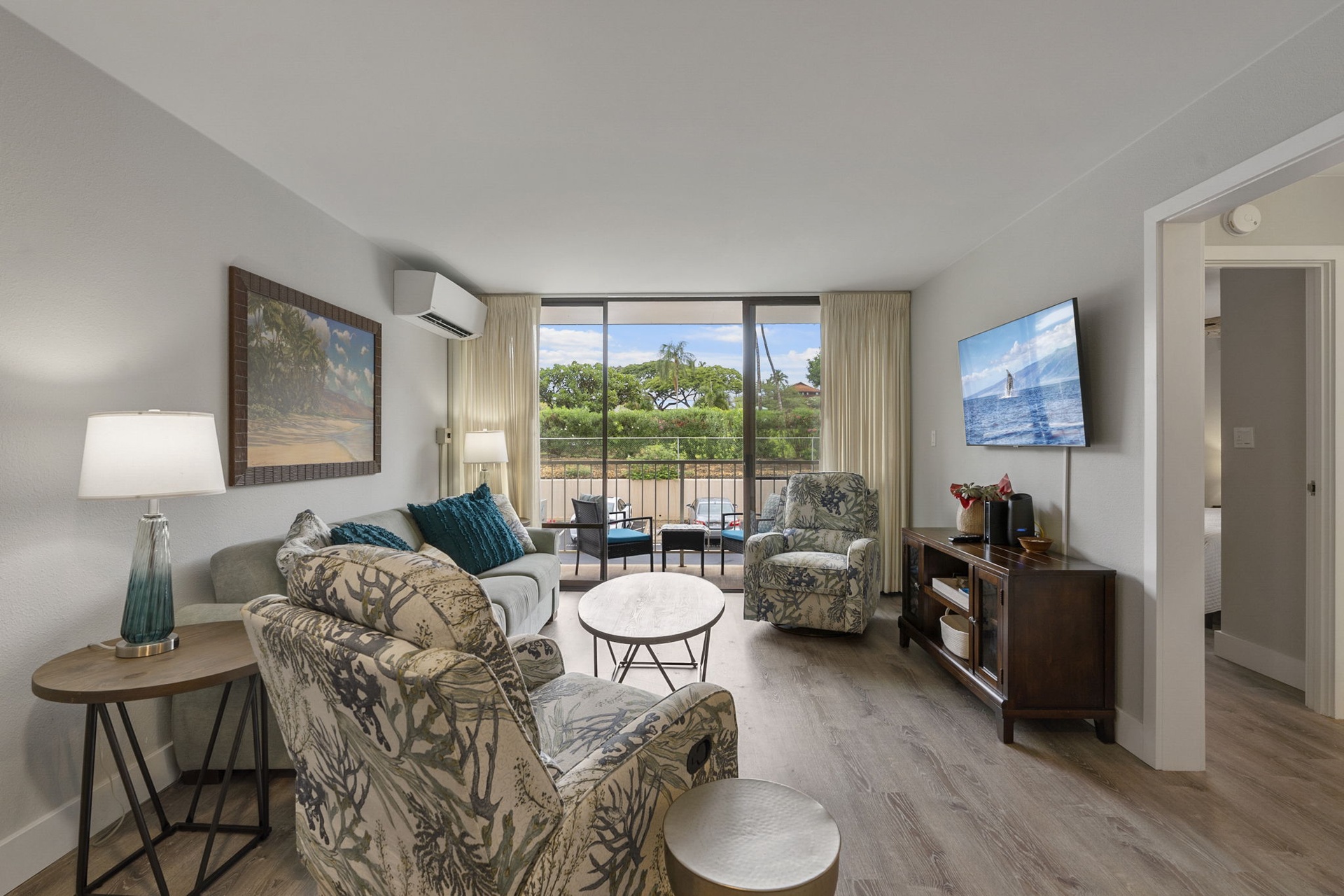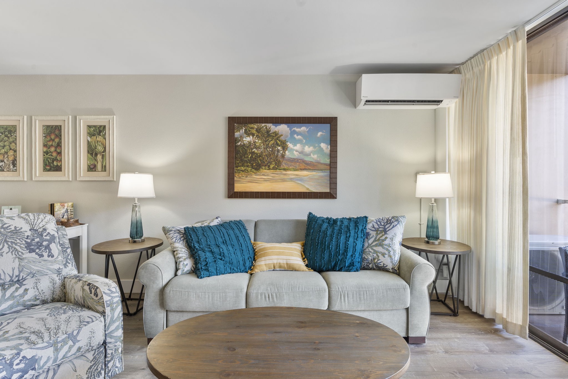A/C in the living room and ceiling fans throughout every room add to your comfort. Please note there is no AC in the bedrooms, but you do get a nice breeze through the screened windows from the Maui trade winds.