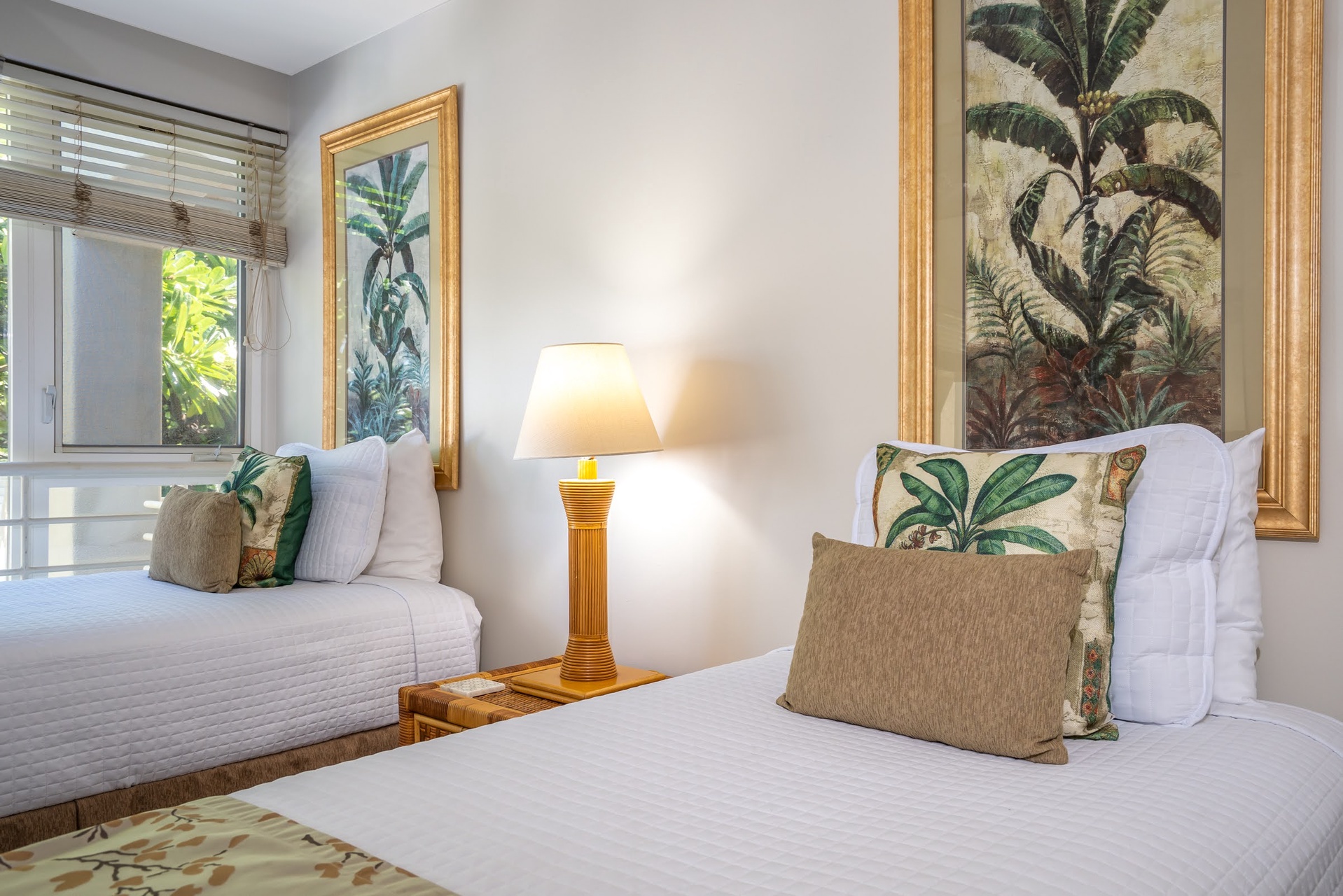 The Palms at Wailea is an architect-designed, two-story complex with charming Mediterranean accents and beautifully manicured grounds, including two lily ponds joined by a charming stream. Located above the pristine shores of Keawakapu Beach, this impeccably furnished home will provide comfort, luxury, and plenty of room to spread out while you explore and enjoy all that Maui has to offer. The spacious covered lanai with a dining table allows for relaxing evenings while you kick back and enjoy the views. Lounge poolside in the afternoon and then relax in the Jacuzzi after the sun sets and take in the beauty of the brilliant Maui sunset skies.