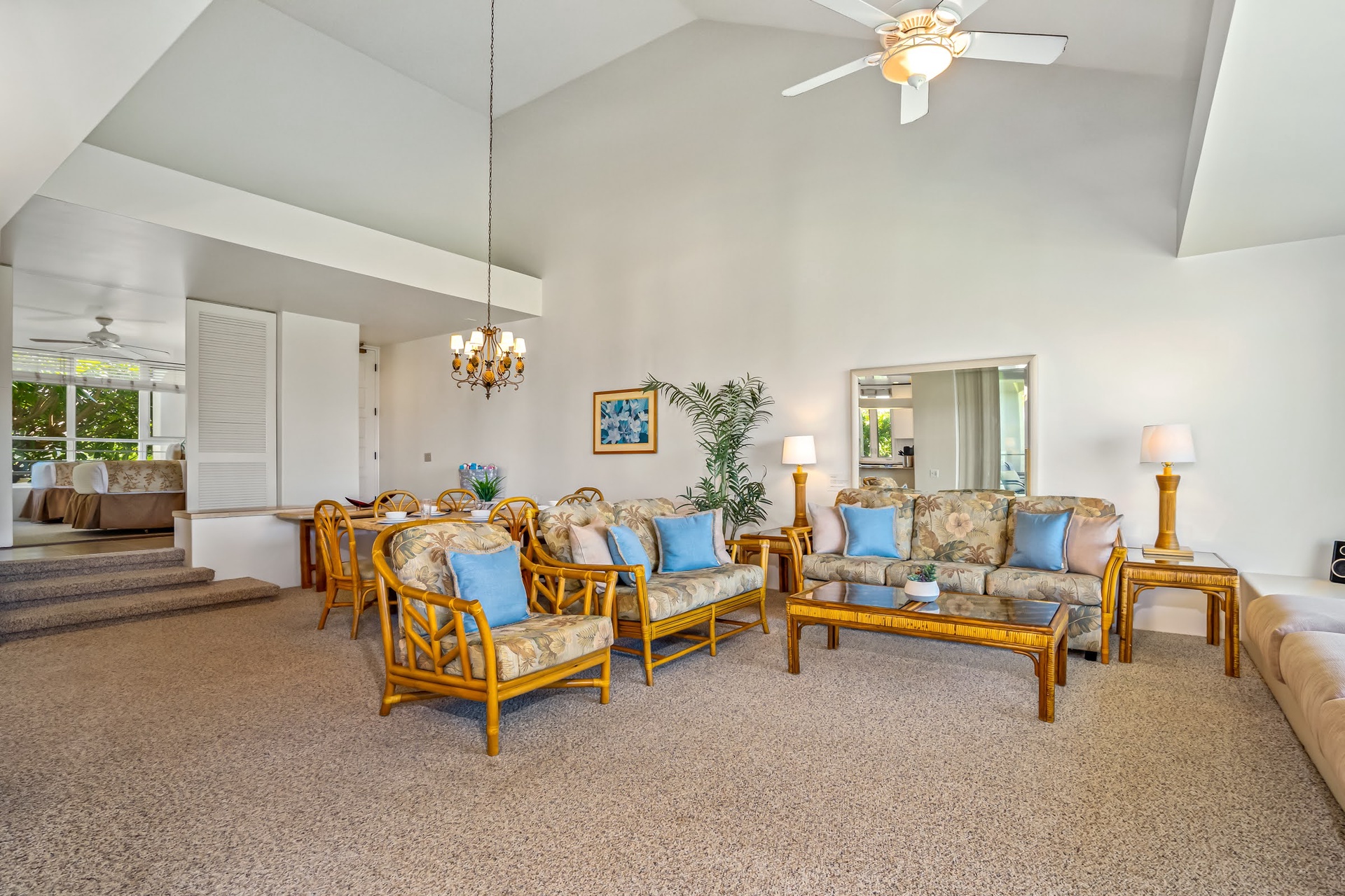 Plenty of windows and glass doors throughout make this home a bright and cheerful Maui escape. As you enter this condo, you are welcomed into the large, spacious living space with an updated kitchen, dining area, and family room all open to each other. With the large glass doors open, you add that additional outdoor space, and there is more than enough room for whatever activities you choose during your stay. Leave the kids to watch Saturday morning cartoons on the comfy pull-out sleeper sofa while Mom does her morning yoga routine on the expansive lanai, and dad sets up shop in the kitchen for cooking morning brunch.