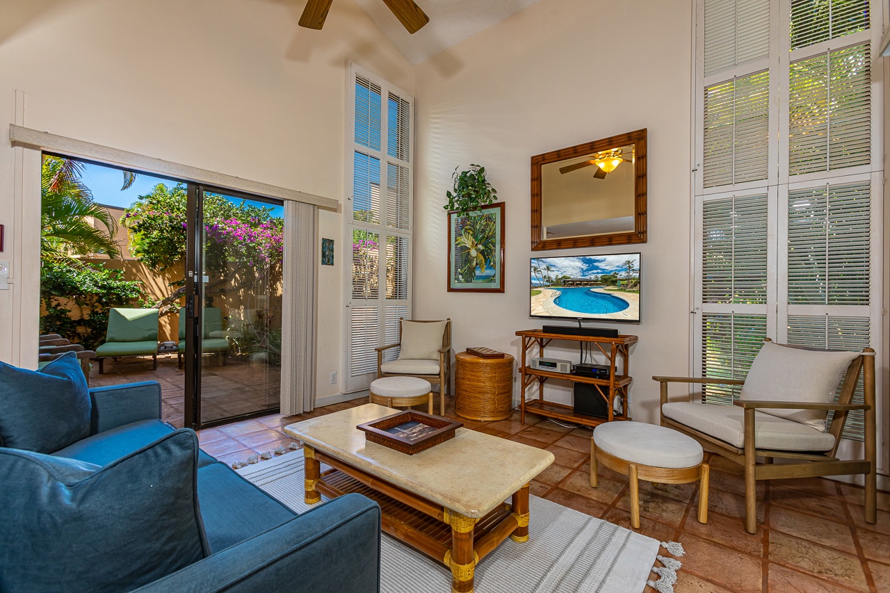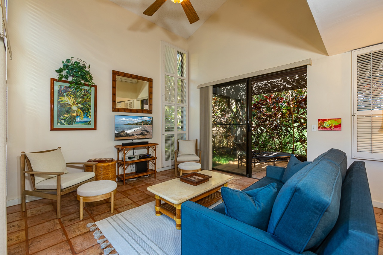 Comfortable living room has access to the private lanai.