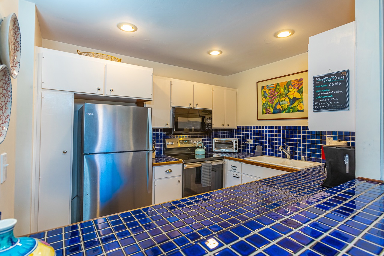We cooked a lot- the kitchen had what we needed. Ekahi banned individual grills throughout the complex- so it’s a little walk to an outside grill.