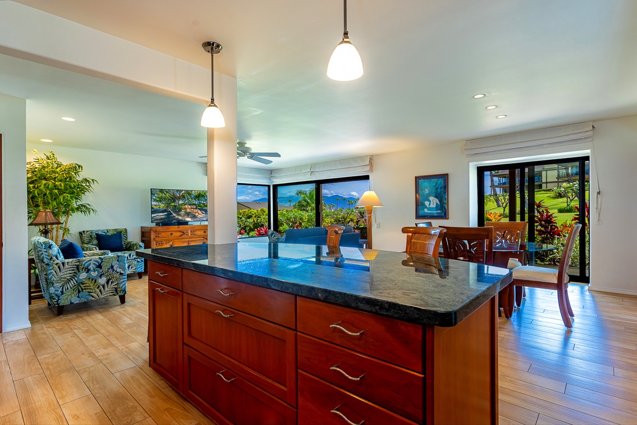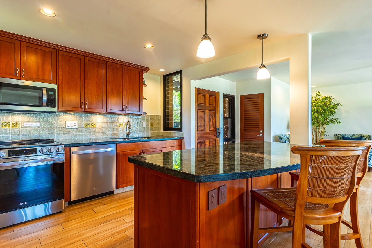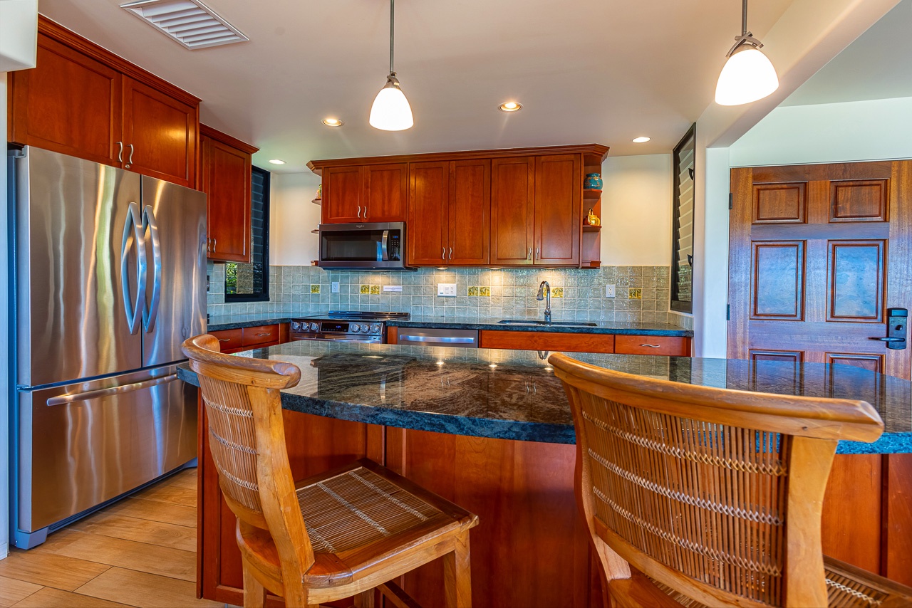 This bright and spacious condo is perfect for honeymooning couples, anniversary stays, and those just looking to escape to their own island retreat. Stunning ocean views and lush tropical gardens are abundant when staying at 2303. Enjoy gorgeous sunsets while being surrounded by fragrant native trees and flowers. Keep an eye out for showstopping displays from Humpback Whales breaching and playing in the winter months.