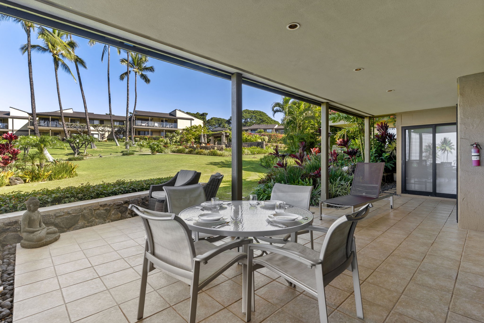 Enter 2303 and your eyes will be drawn to the spectacular ocean view and you will immediately feel swept into your own private beach bungalow. This ground floor condo features 2 walls of windows with spectacular views that allow abundant natural light into the living area. The ground floor lanai is quite spacious and has plenty of space for lounging in the sun, relaxing in the shade, and enjoying meals al fresco under the stars at your outdoor dining table.